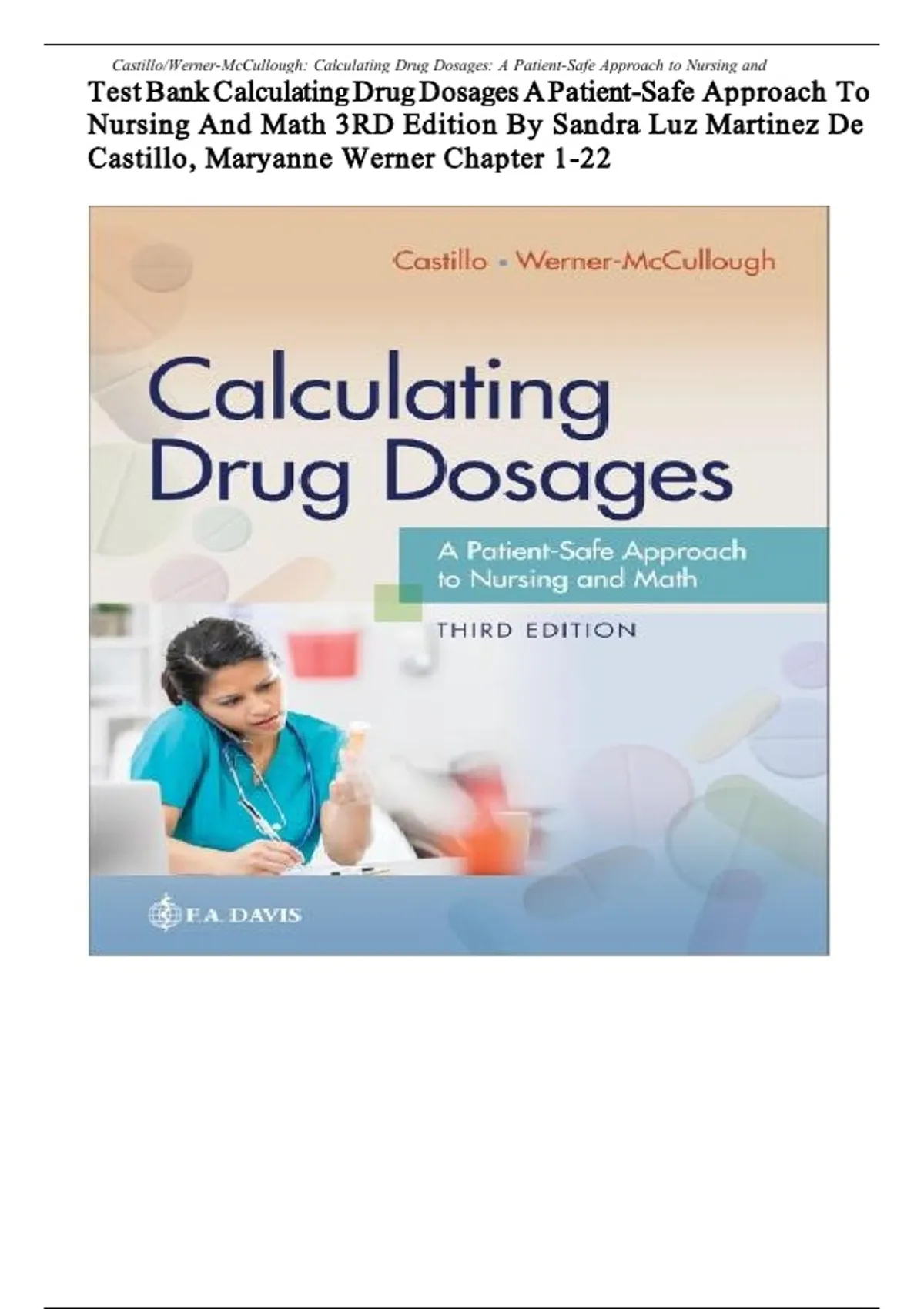 Test Bank For Calculating Drug Dosages: A Patient-Safe Approach to Nursing and Math 3rd Edition ( Castillo, 2025) All Chapters || Latest Edition