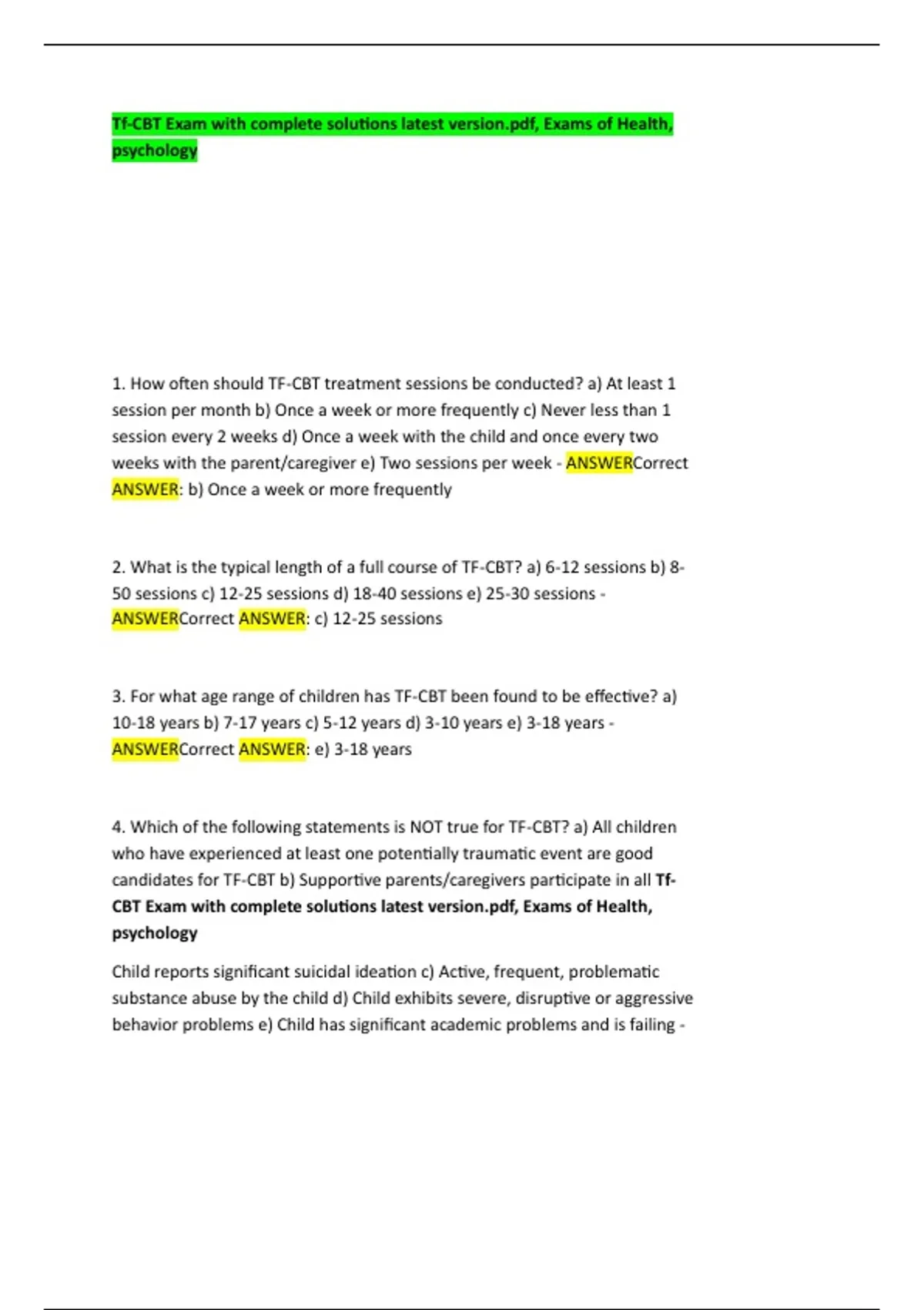 Tf-CBT Exam with complete solutions latest version.pdf, Exams of Health,