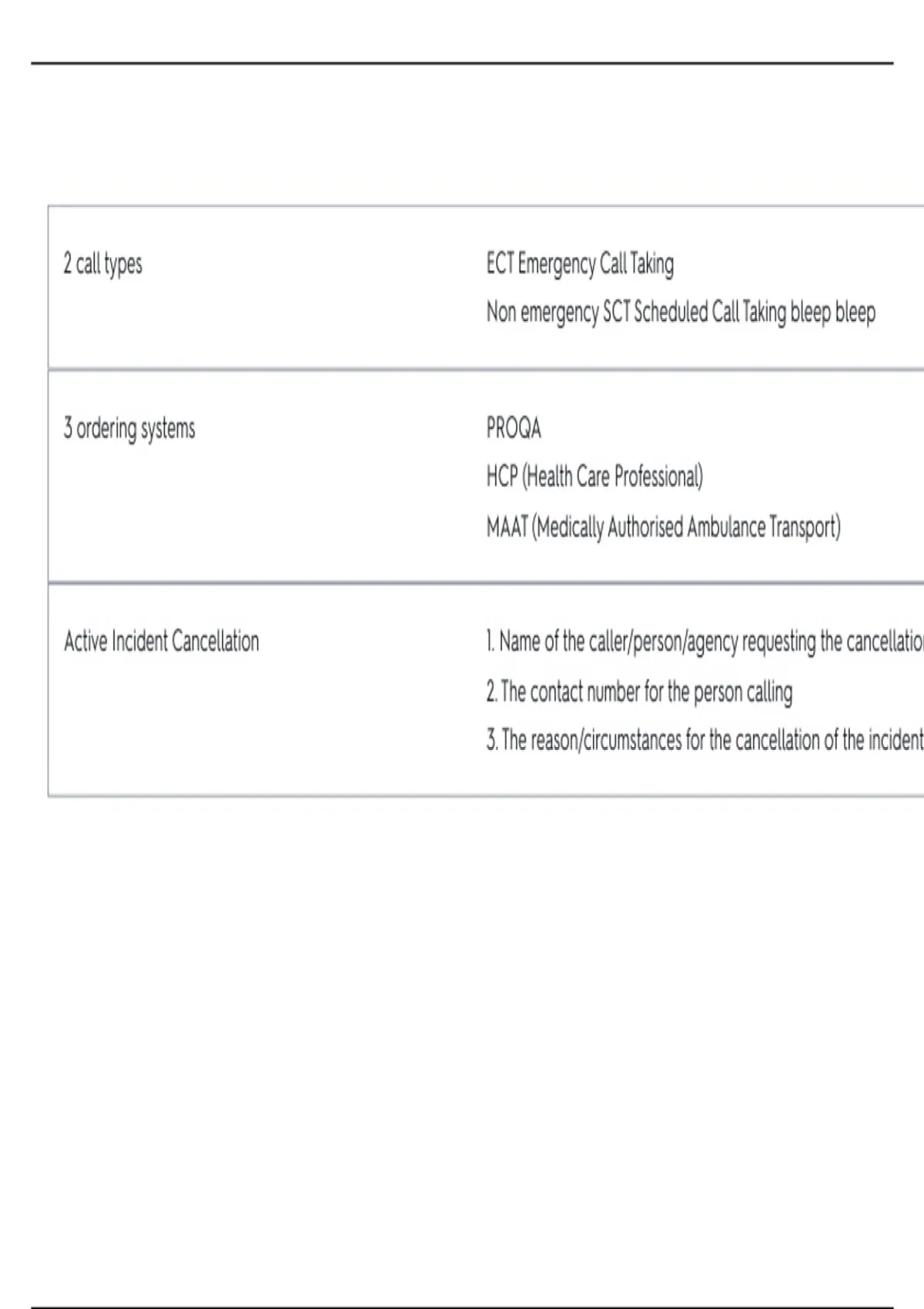 Non emergency SCT Scheduled Call Taking bleep bleep