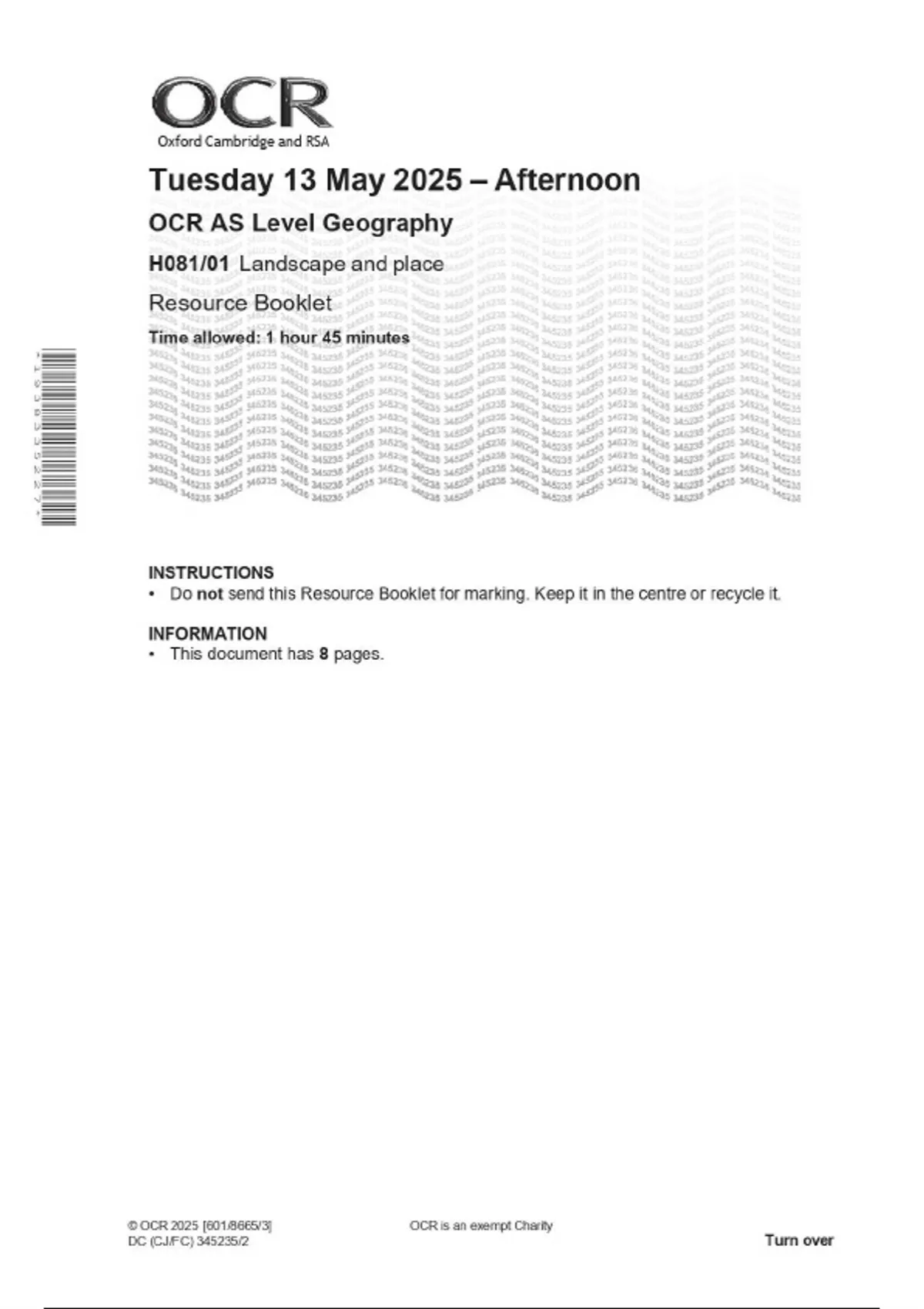 OCR AS Level Geography H081/01 Landscape and place Resource Booklet