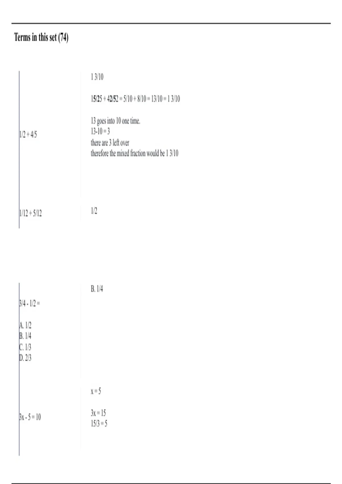 1/2 + 4/5 13-10 = 3