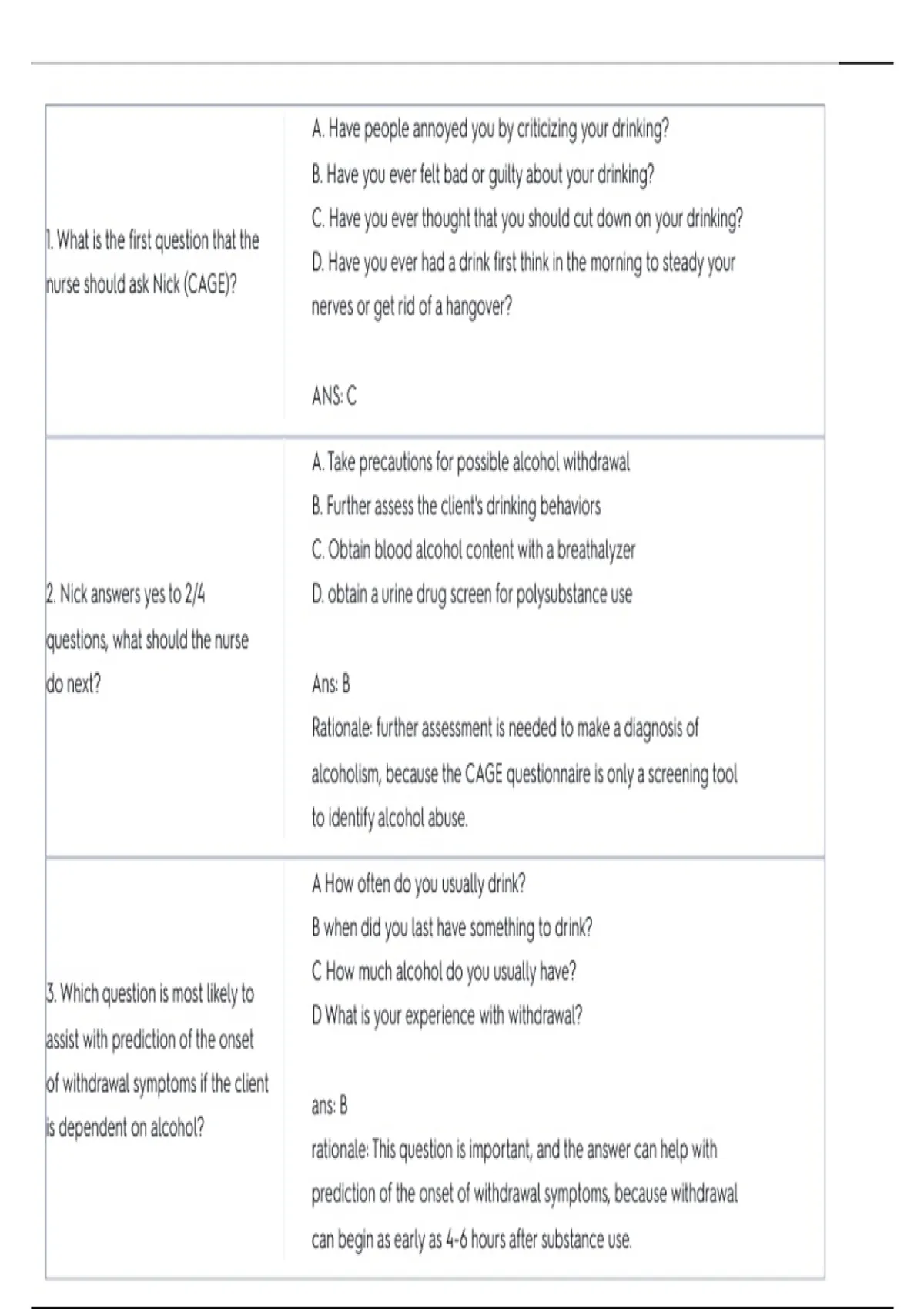 2. Nick answers yes to 2/4 D. obtain a urine drug screen for polysubstance use