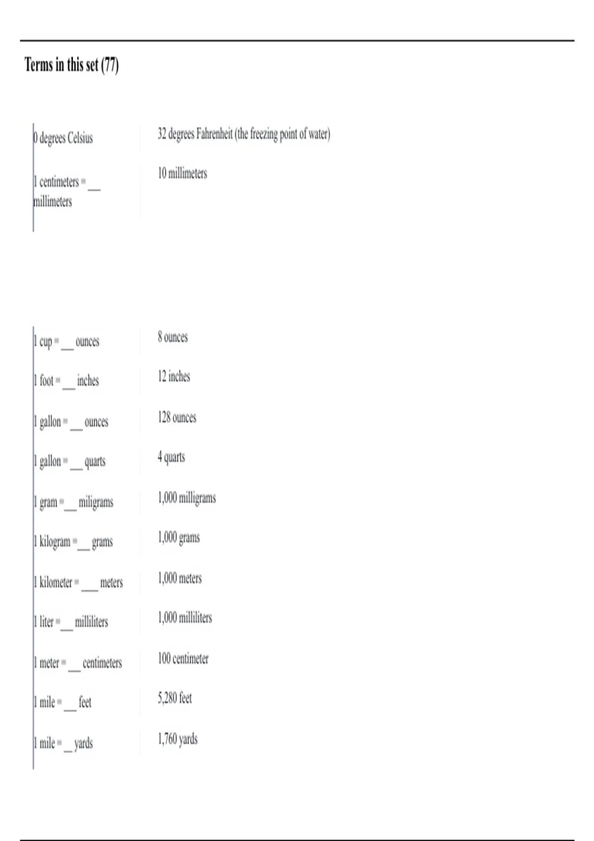 0 degrees Celsius 32 degrees Fahrenheit (the freezing point of water)