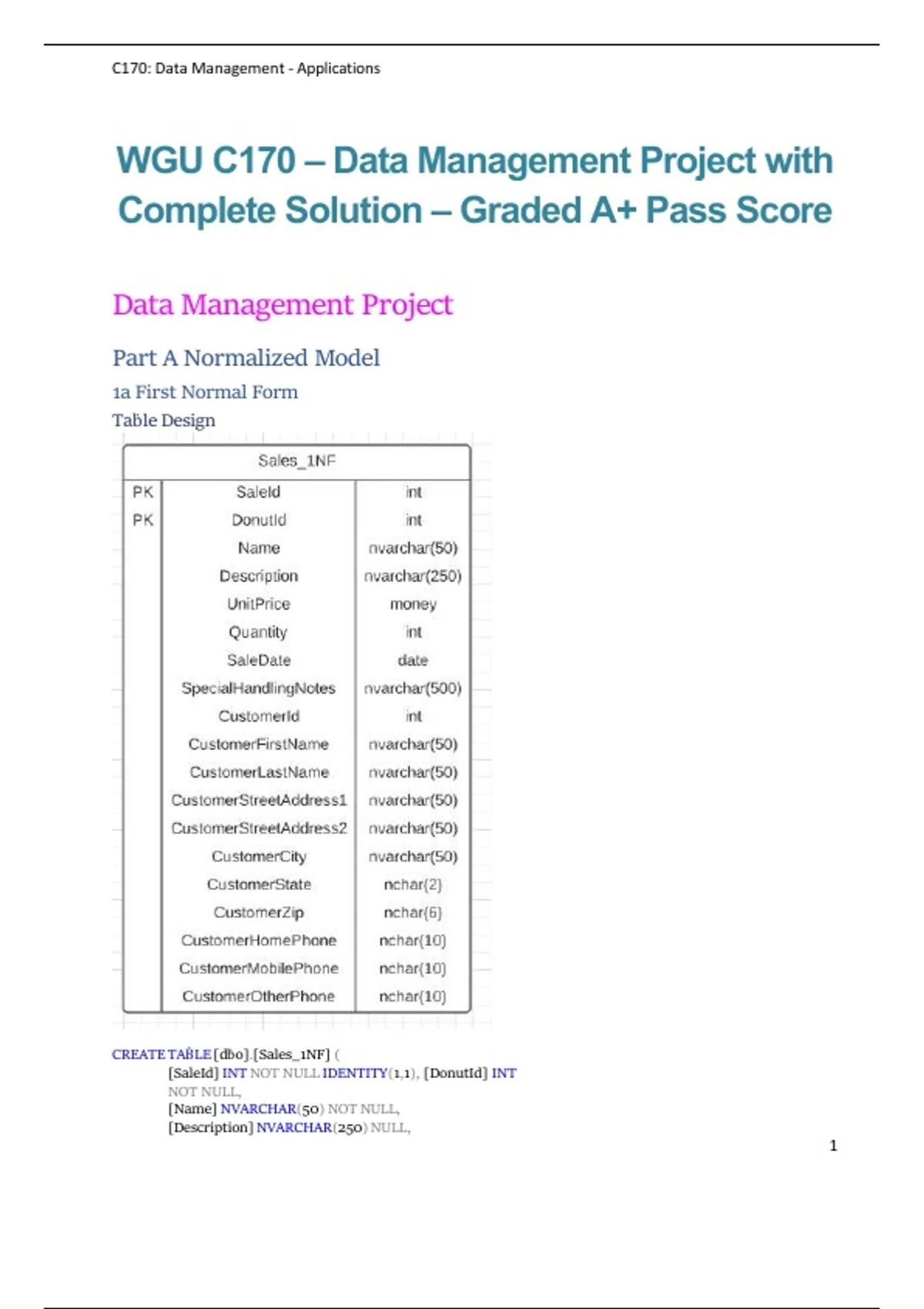 WGU C170 Data Management Applications – Project with Complete Solution (Western Governors University) 2026/2027