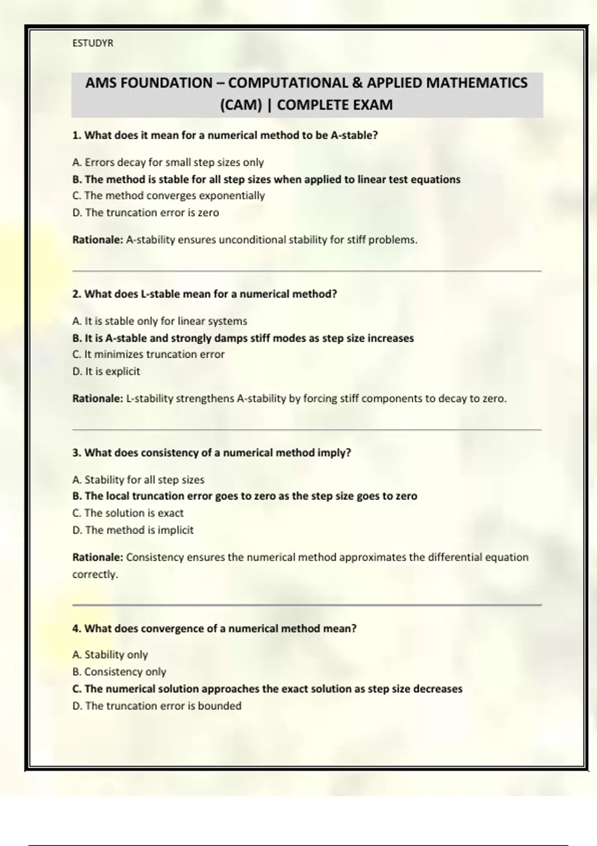 1. What does it mean for a numerical method to be A-stable?