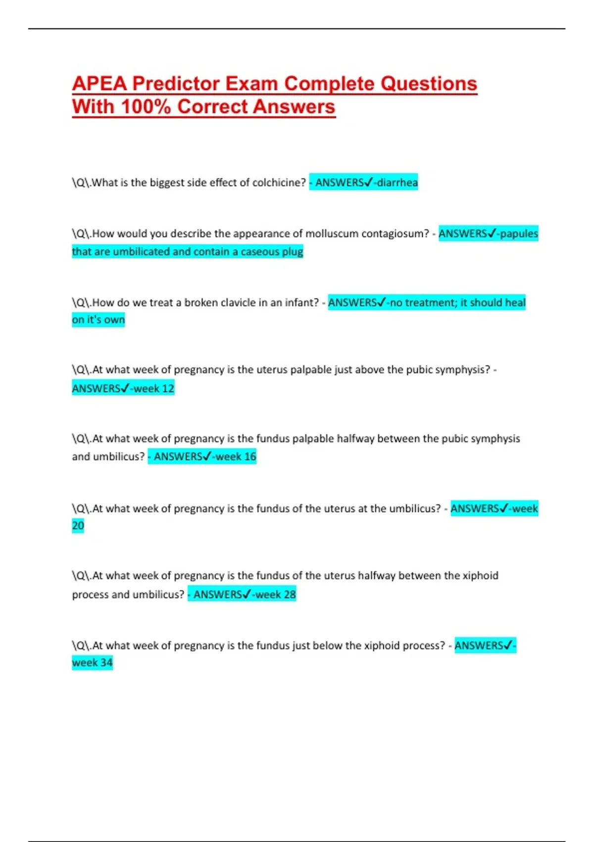 \Q\.At what week of pregnancy is the fundus just below the xiphoid process? - ANSWERS✔-
