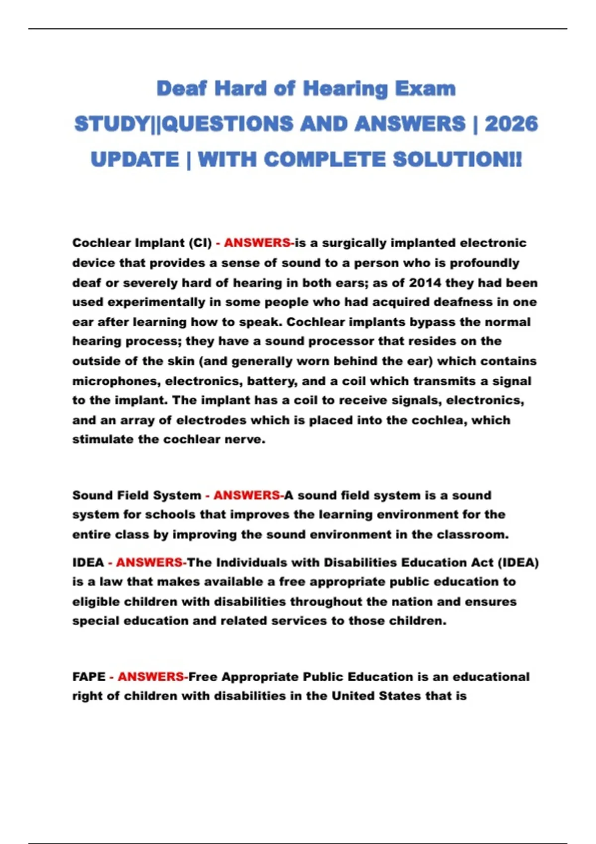 Deaf Hard of Hearing Exam STUDY||QUESTIONS AND ANSWERS | 2026 UPDATE | WITH COMPLETE SOLUTION!!