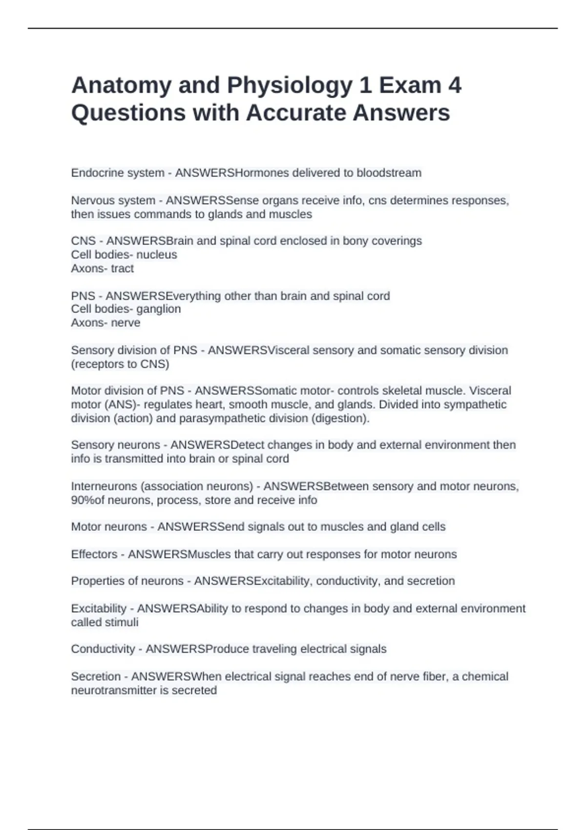 PNS - ANSWERSEverything other than brain and spinal cord