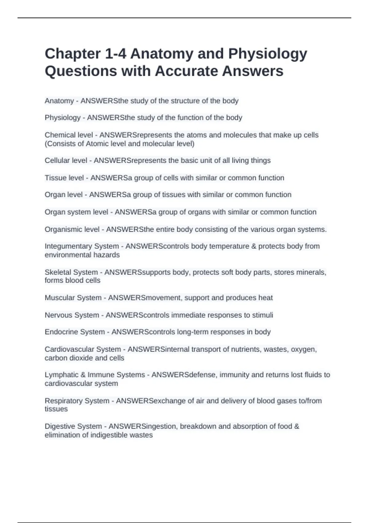 Anatomy - ANSWERSthe study of the structure of the body