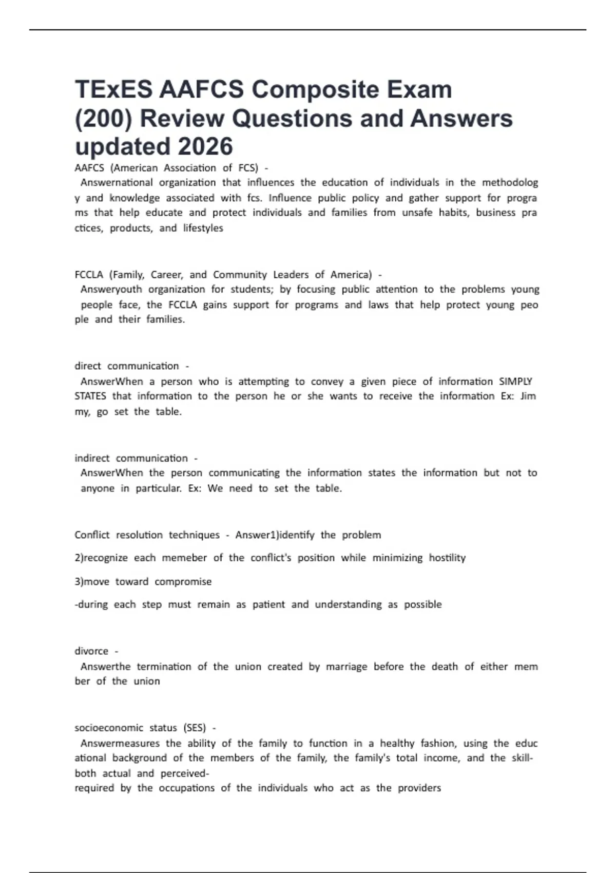 TExES AAFCS Composite Exam (200) Review Questions and Answers updated 2026