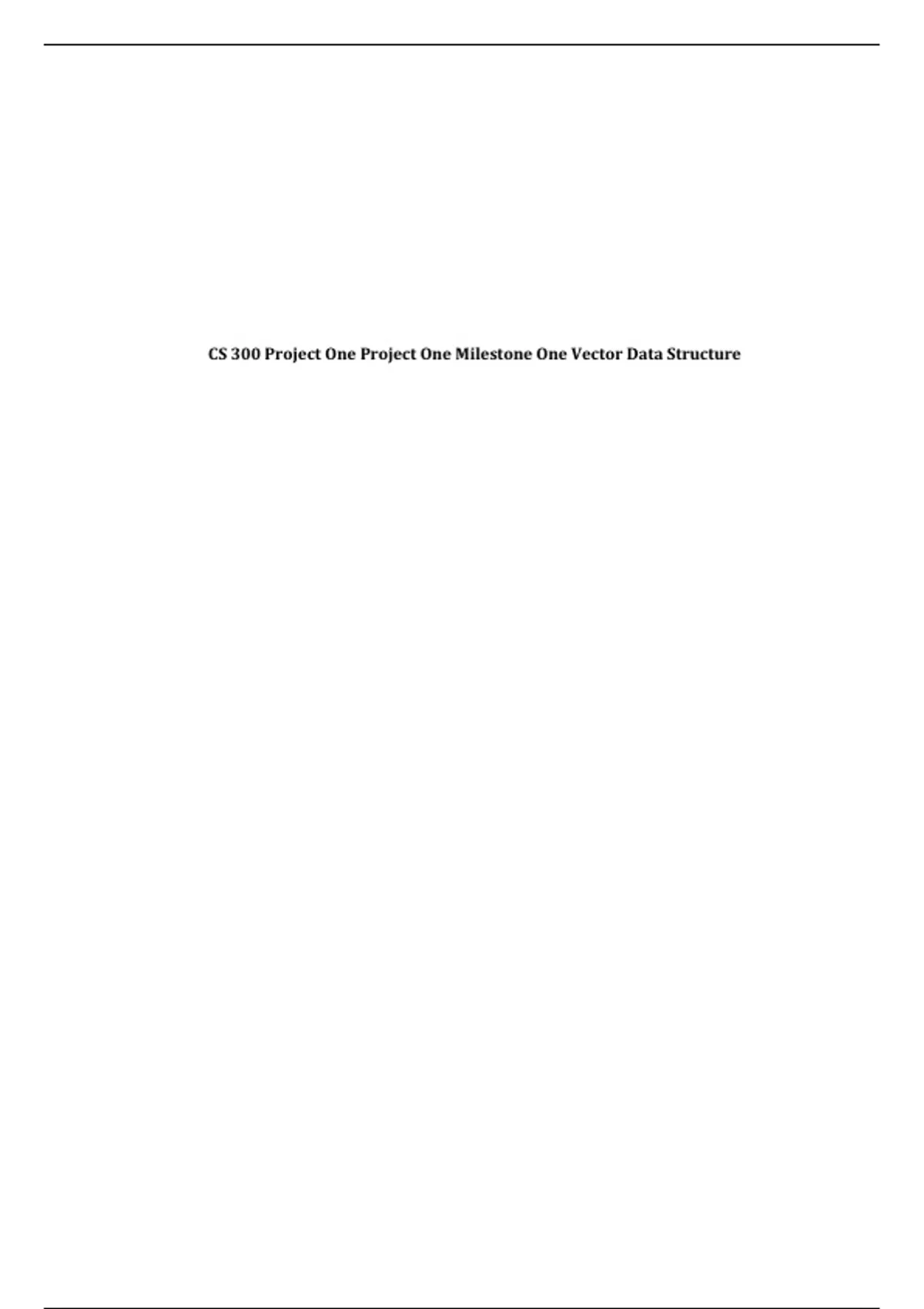 This document covers CS 300 Project One Milestone One and focuses on using a vector data structure to store and manage course information loaded from a text file. It includes structured pseudocode for defining a course structure, loading and validating course data, checking prerequisite integrity, and searching for and displaying course details. The assignment emphasizes input validation, vector traversal, and foundational program design techniques