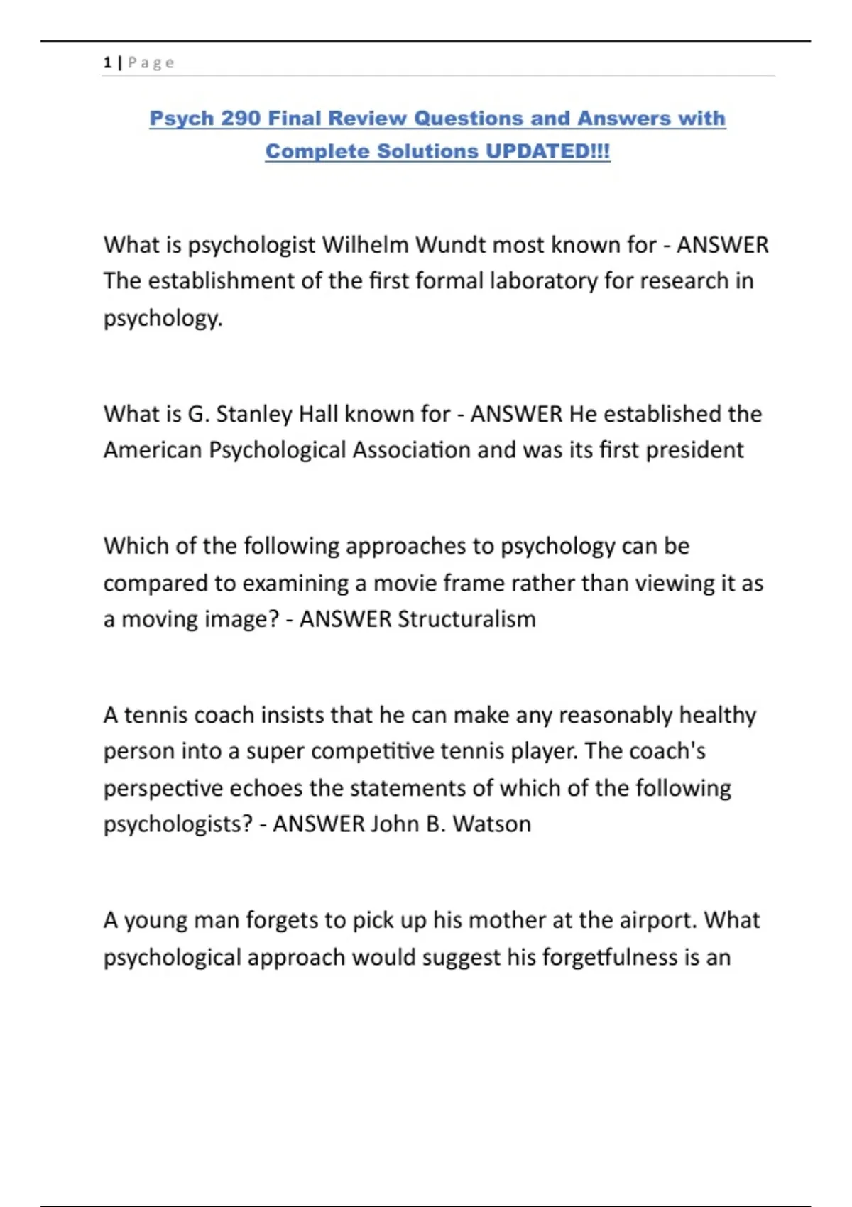 Psych 290 Final Review Questions and Answers with