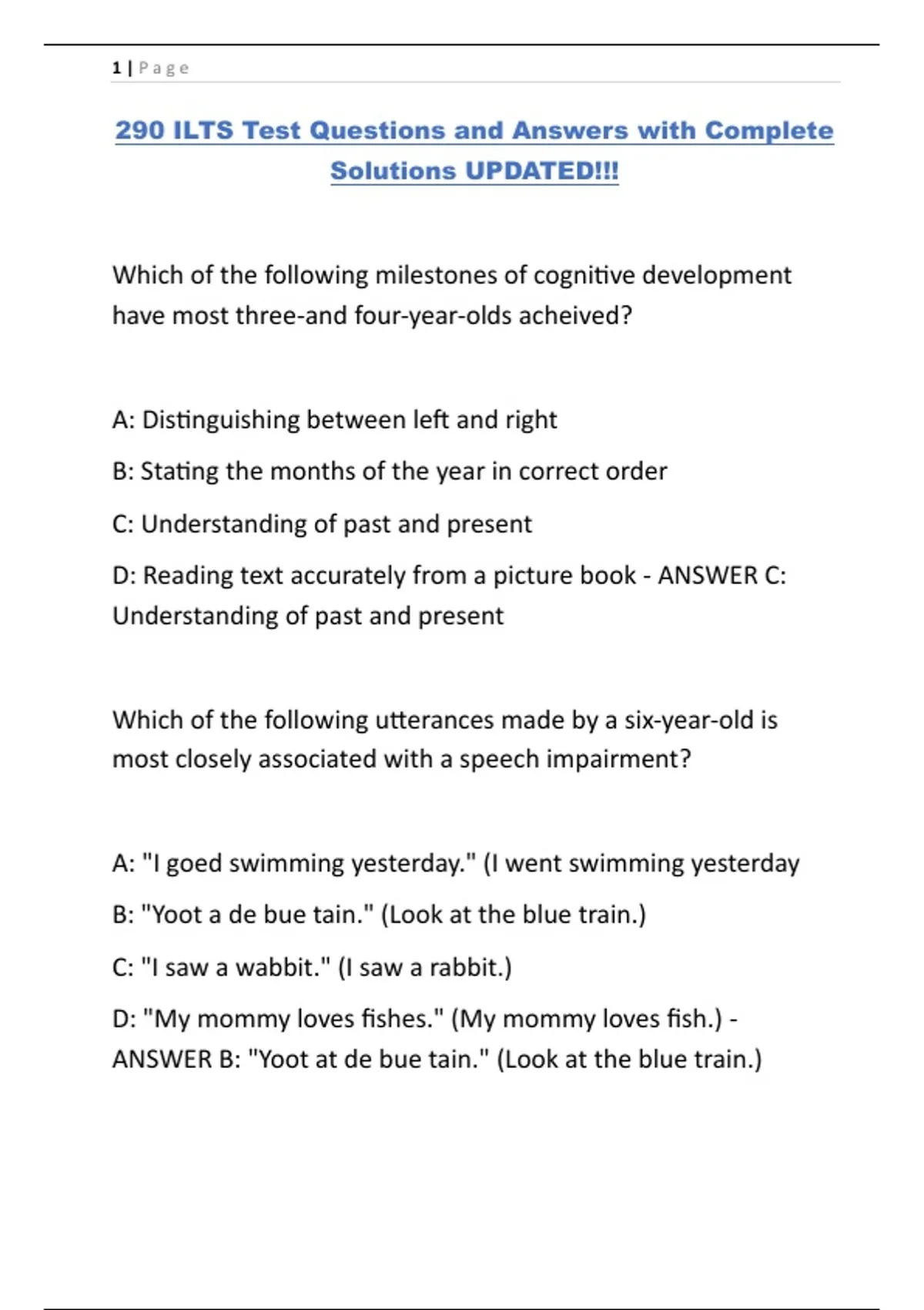 290 ILTS Test Questions and Answers with Complete Solutions UPDATED!!!.