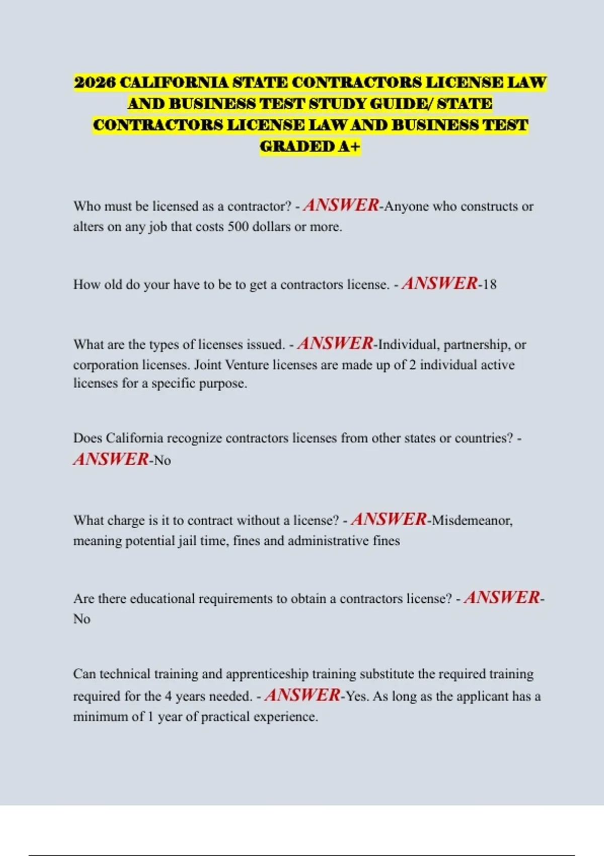 CONTRACTORS LICENSE LAW AND BUSINESS TEST