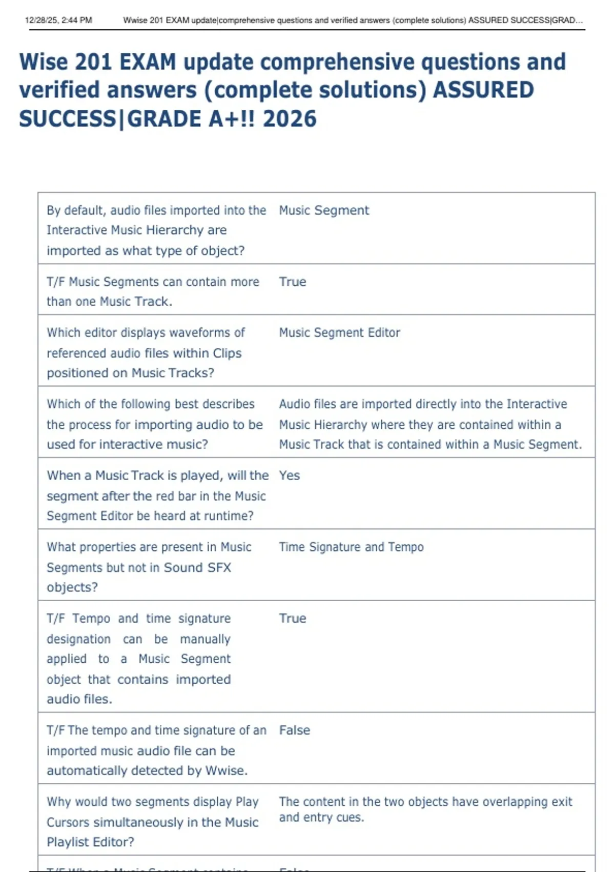 , 12/28/25, 2:44 PM Wwise 201 EXAM update|comprehensive questions and verified answers (complete solutions) ASSURED SUCCESS|GRAD…