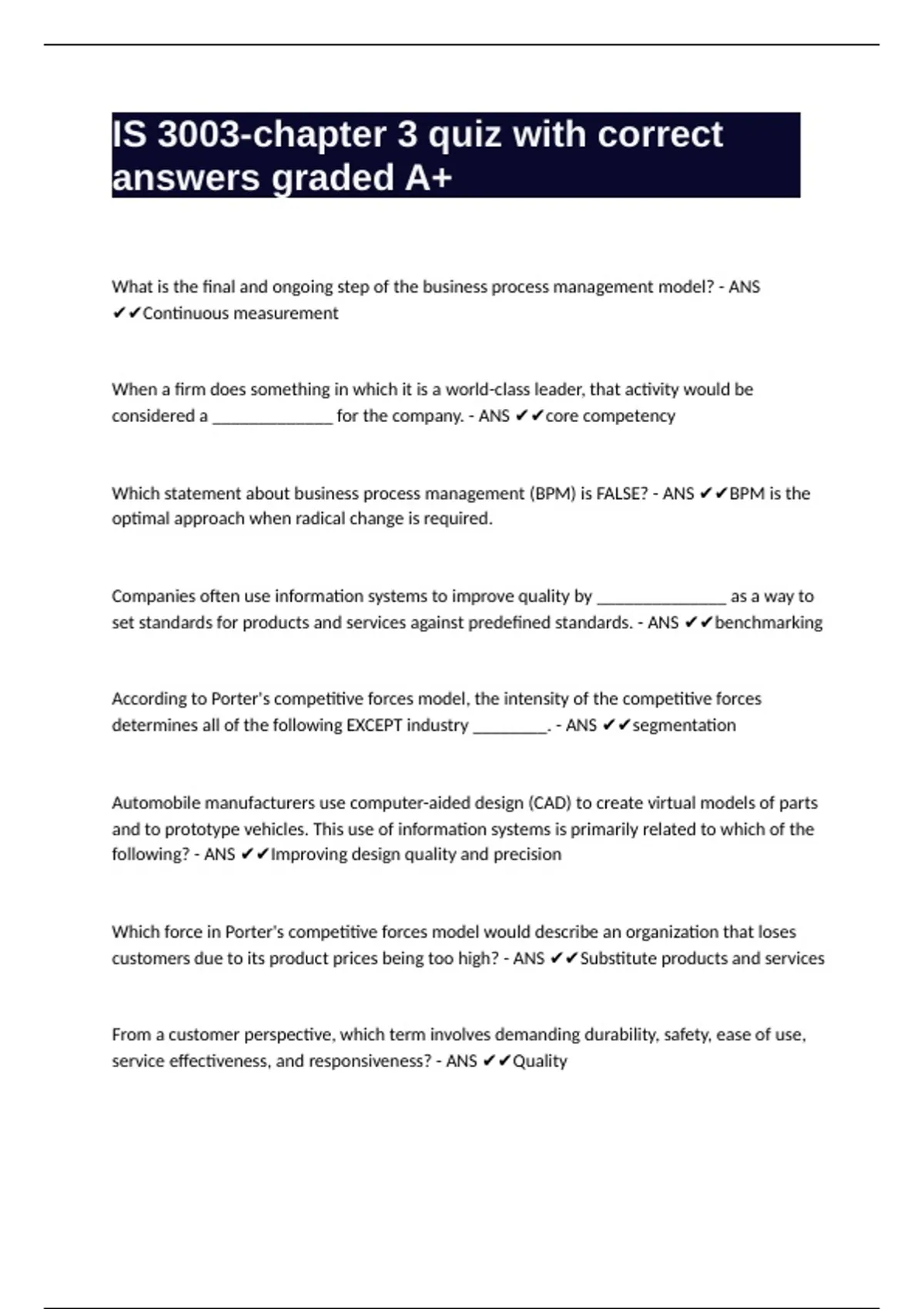Which statement about business process management (BPM) is FALSE? - ANS ✔✔BPM is the