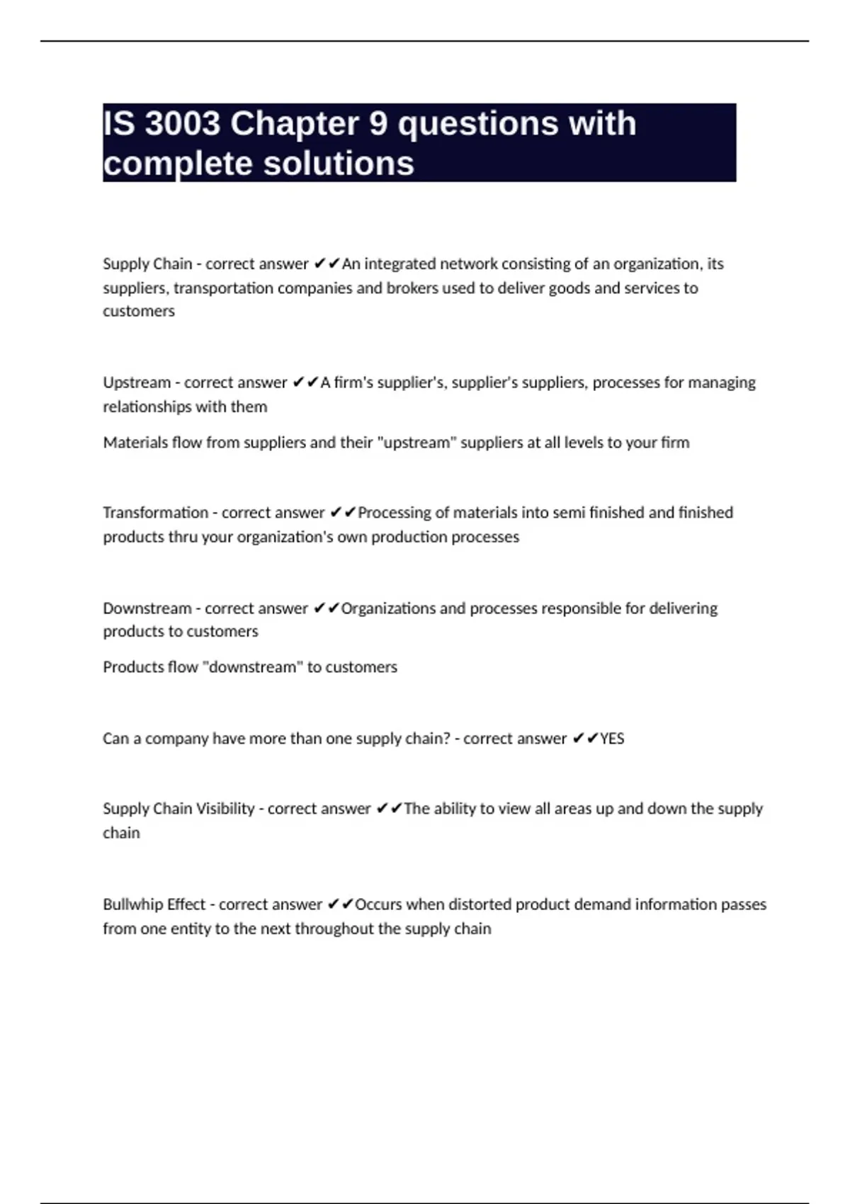 Supply Chain Visibility - correct answer ✔✔The ability to view all areas up and down the supply