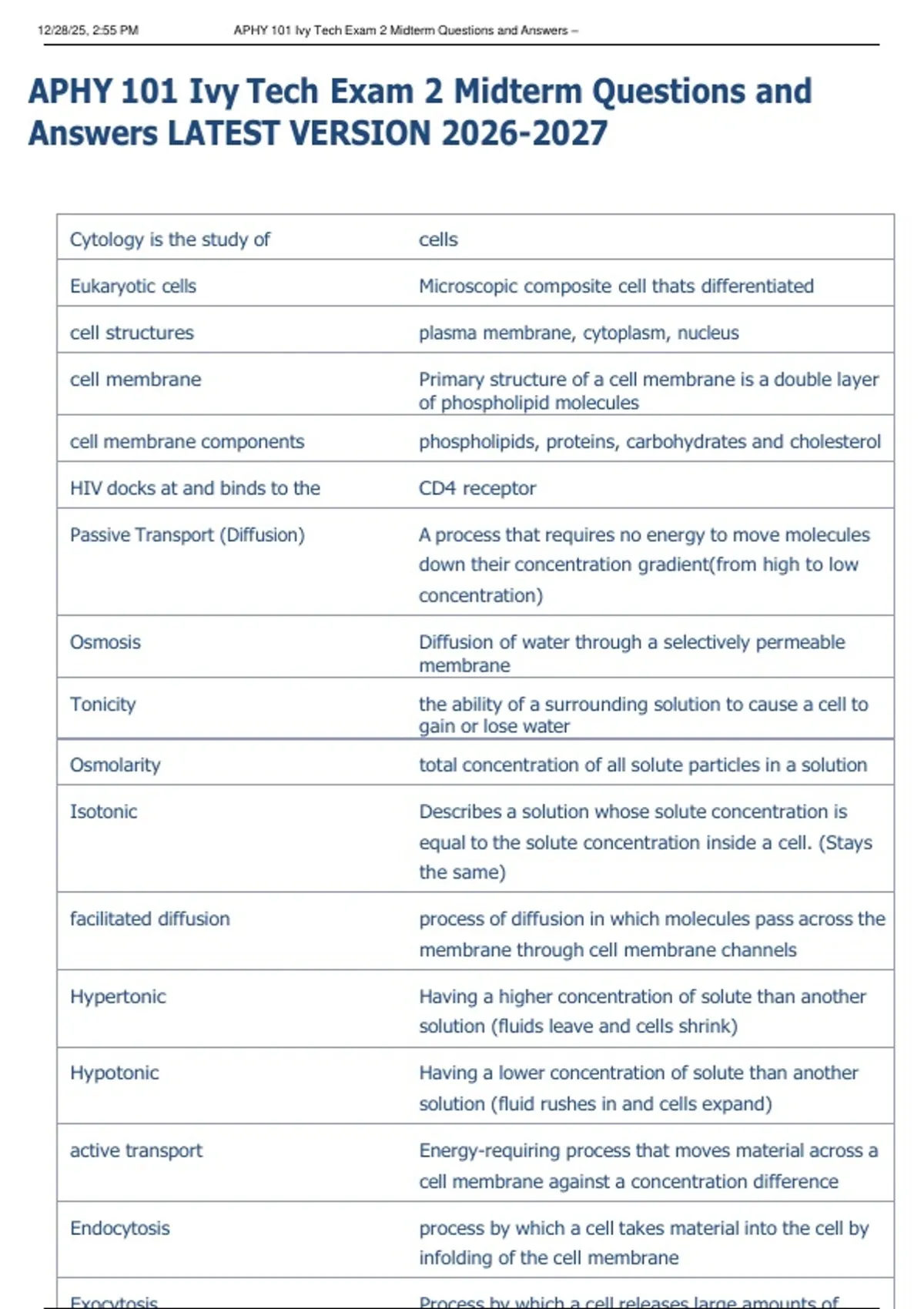 12/28/25, 2:55 PM APHY 101 Ivy Tech Exam 2 Midterm Questions and Answers –