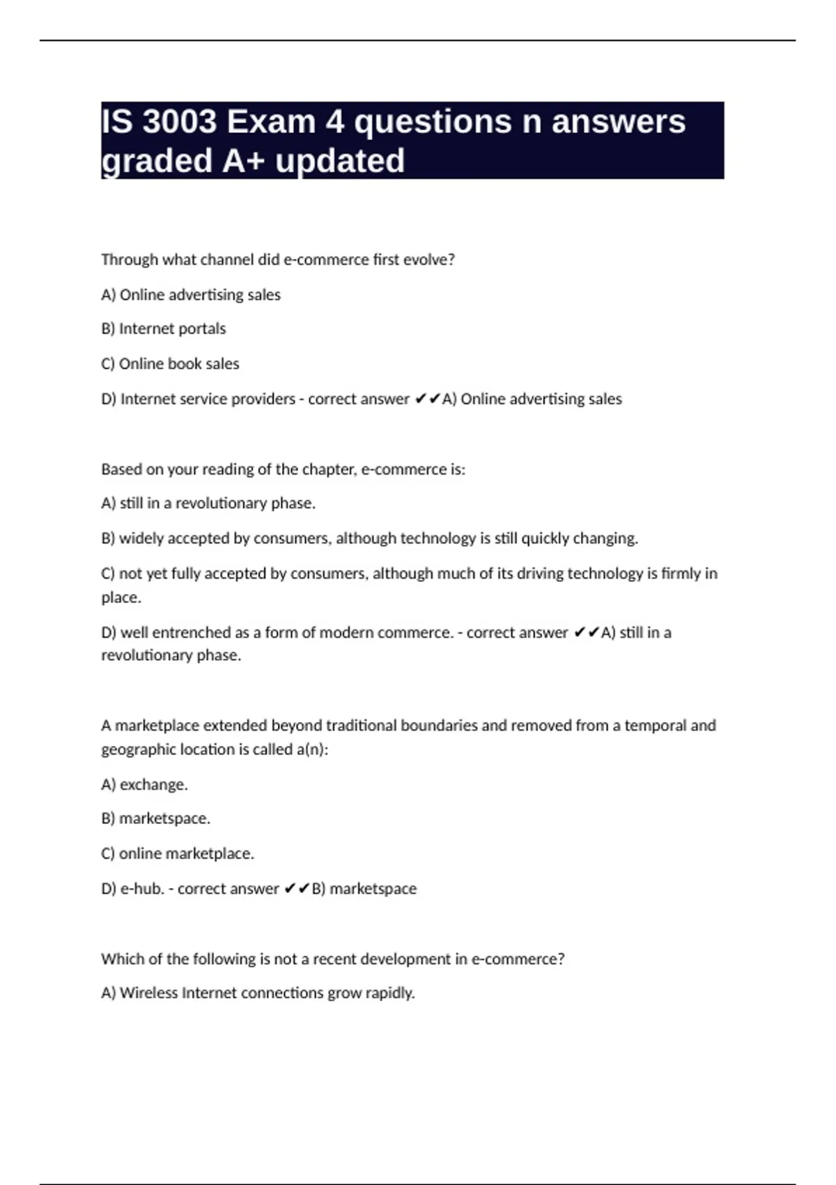 IS 3003 Exam 4 questions n answers graded A+ updated
