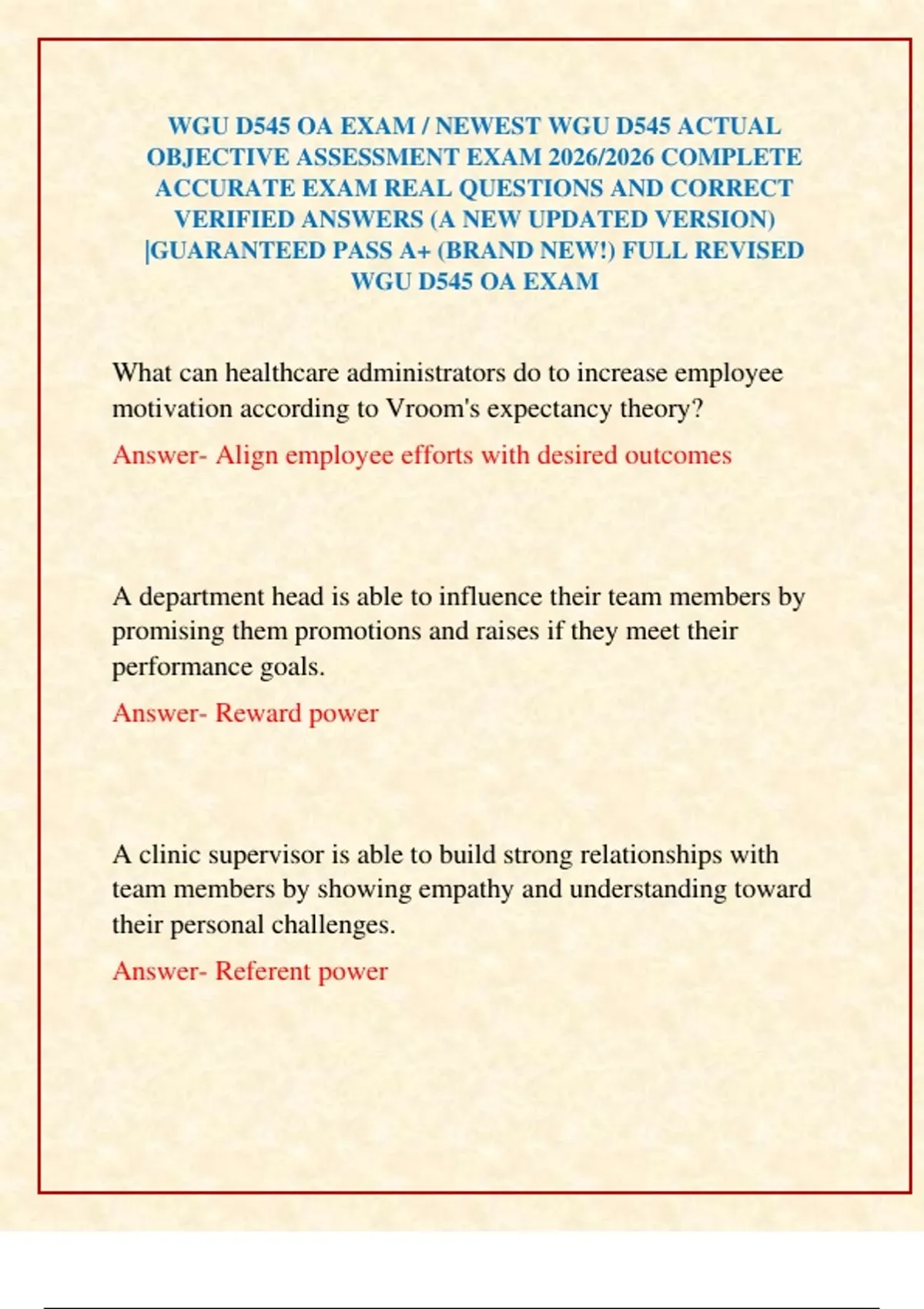 WGU D545 OA EXAM / NEWEST WGU D545 ACTUAL