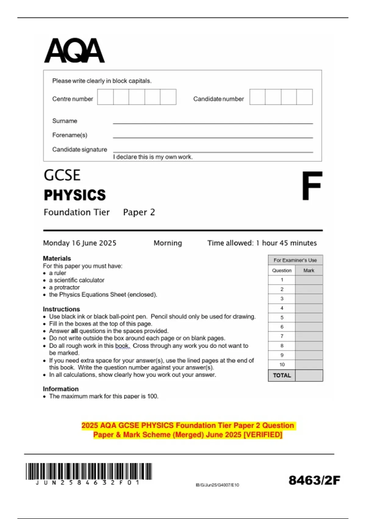 2025 AQA GCSE PHYSICS Foundation Tier Paper 2 Question Paper & Mark Scheme (Merged) June 2025 [VERIFIED]