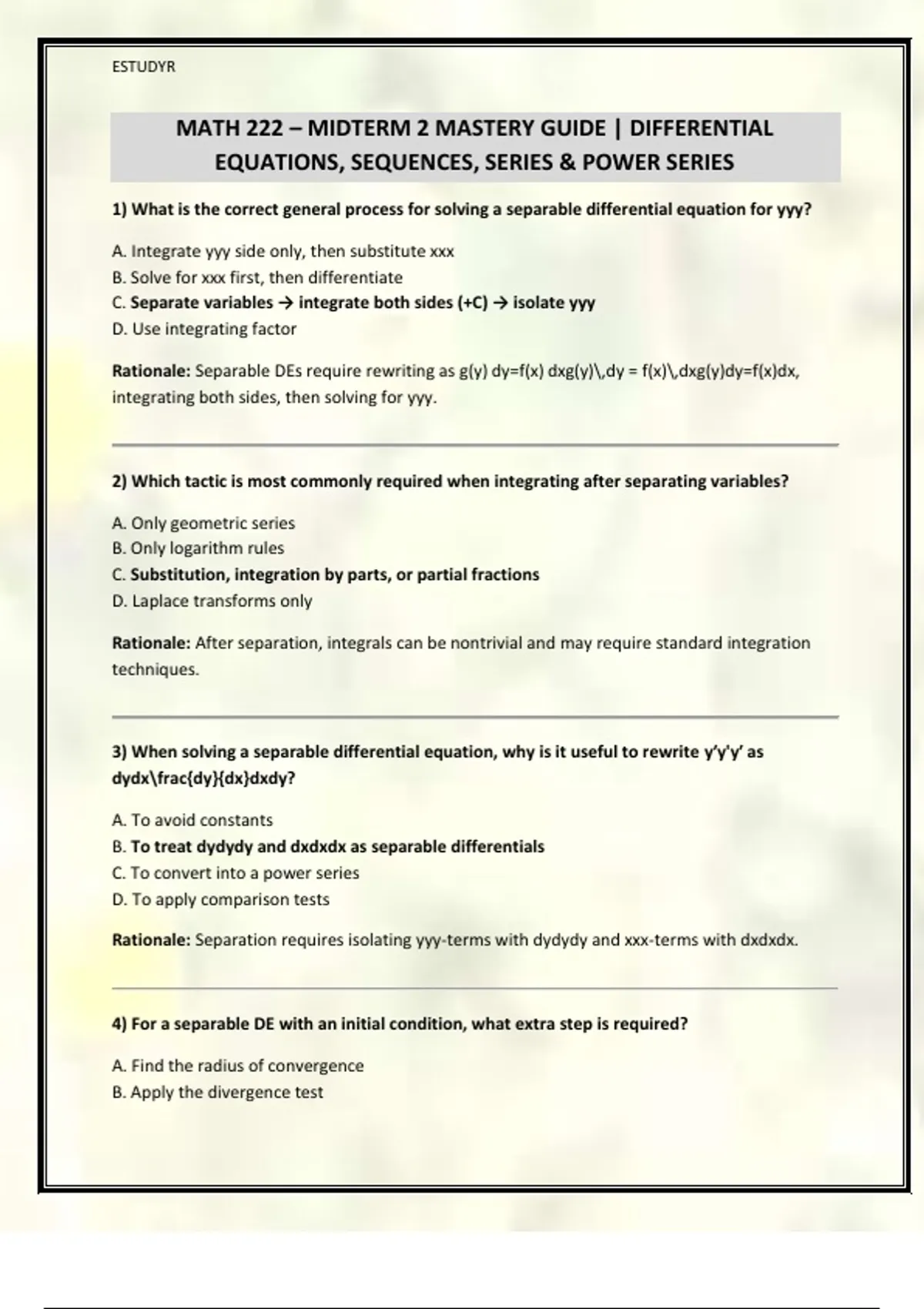 MATH 222 – MIDTERM 2 MASTERY GUIDE | DIFFERENTIAL
