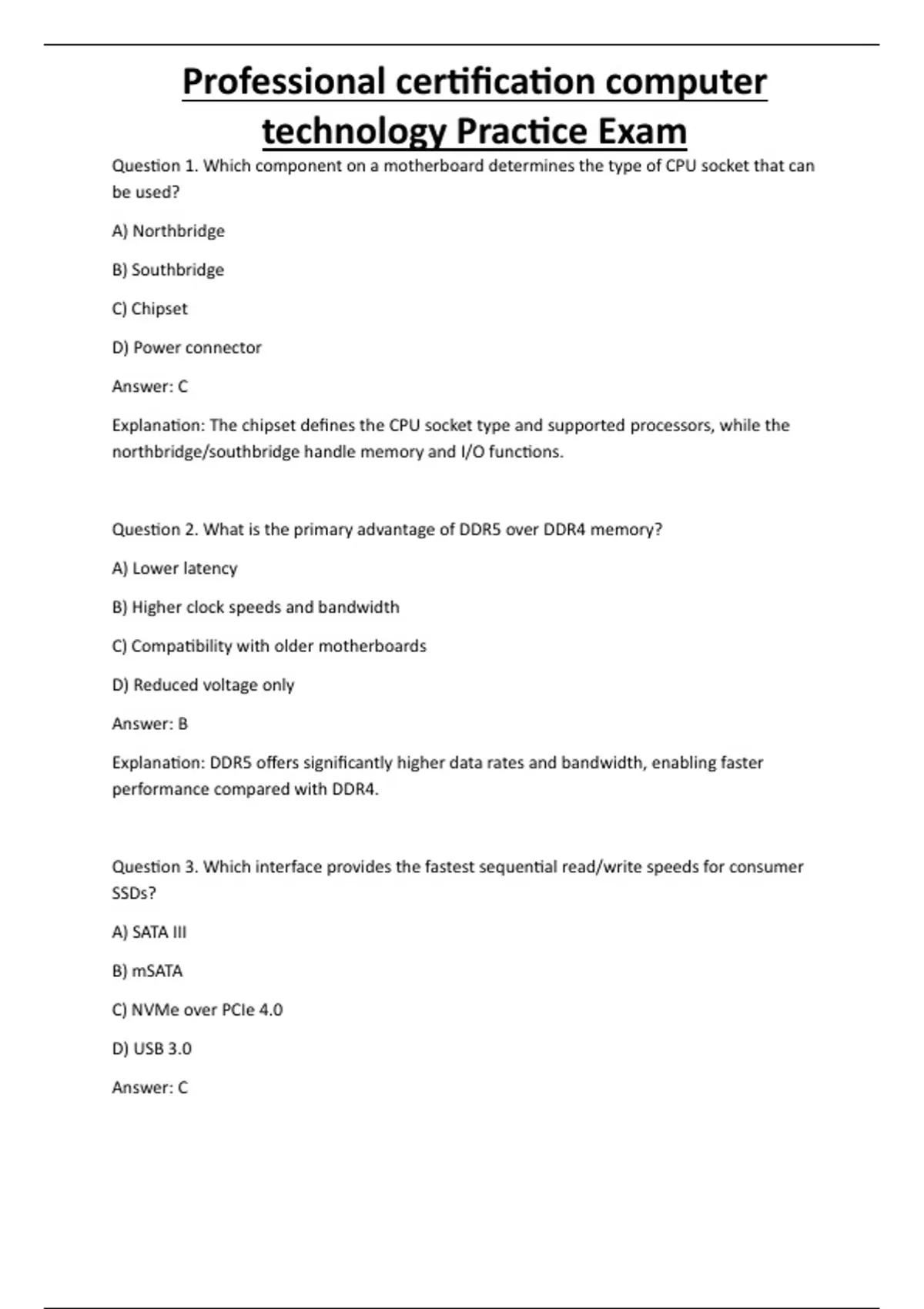 Question 1. Which component on a motherboard determines the type of CPU socket that can