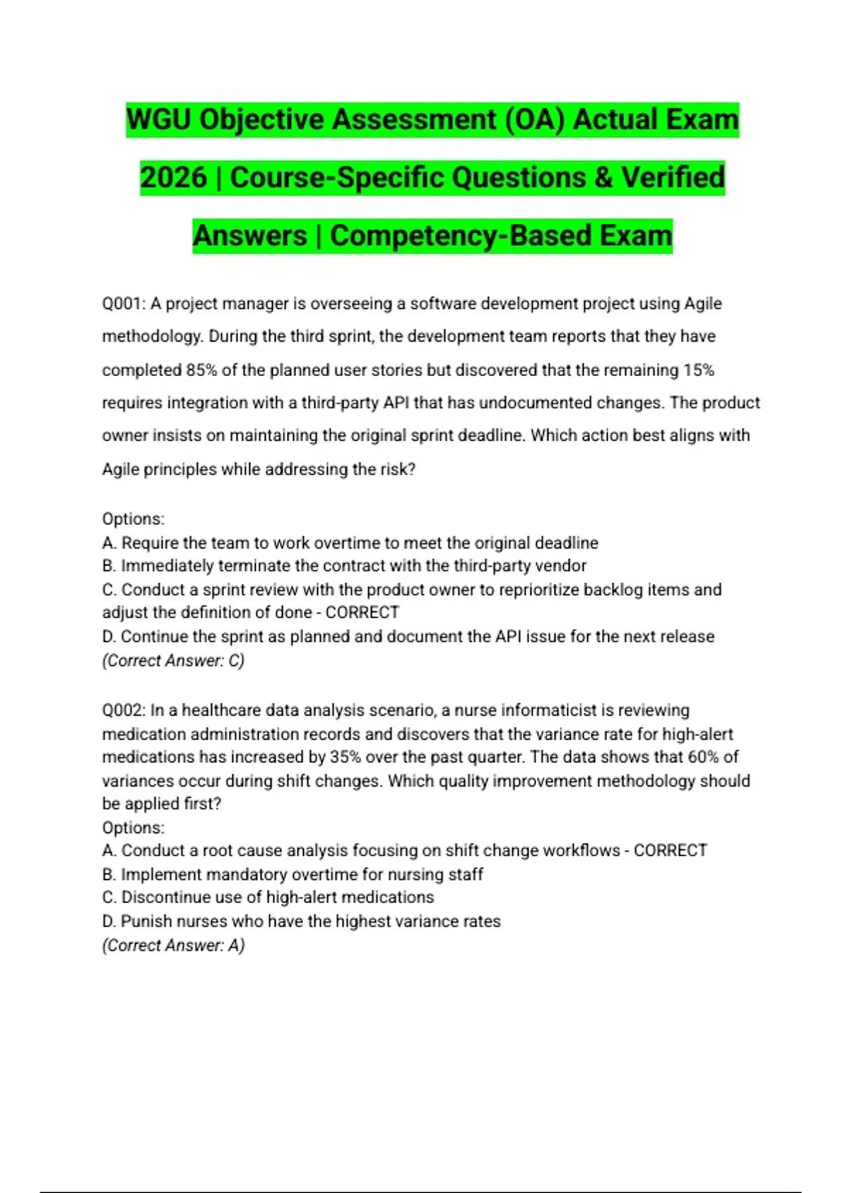 WGU Objective Assessment (OA) Actual Exam 2026 | Course-Specific Questions & Verified Answers | Competency-Based Exam
