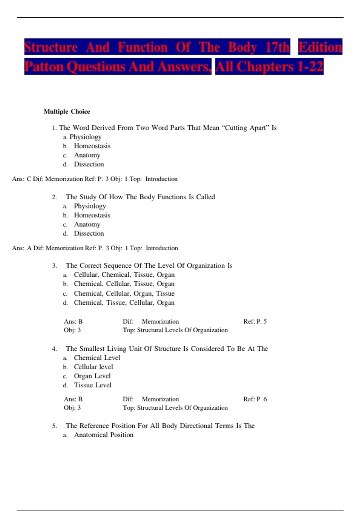 Ans: C Dif: Memorization Ref: P. 3 Obj: 1 Top: Introduction