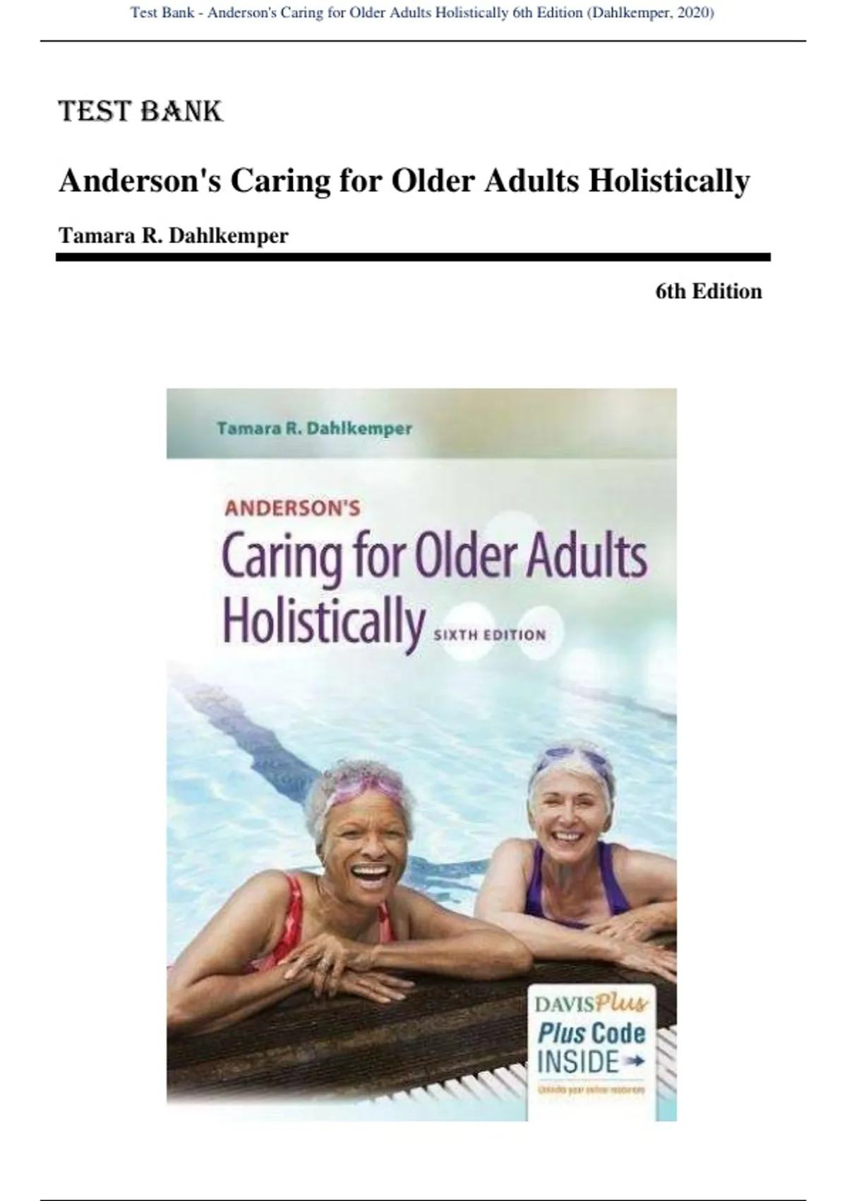 , Test Bank - Anderson's Caring for Older Adults Holistically 6th Edition (Dahlkemper, 2020)