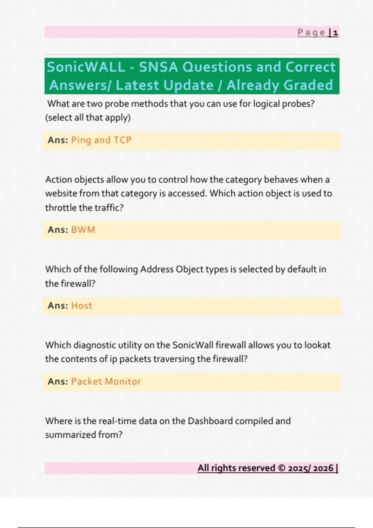 SonicWALL - SNSA Questions and Correct