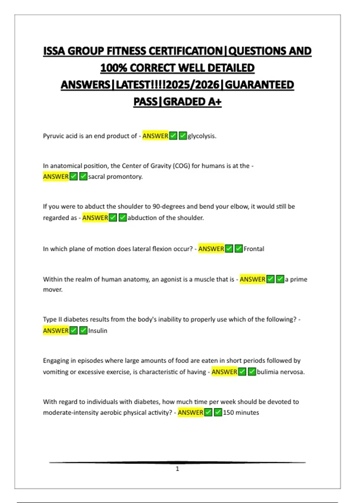 ISSA GROUP FITNESS CERTIFICATION|QUESTIONS AND 100% CORRECT WELL DETAILED ANSWERS|LATEST!!!!2025/2026|GUARANTEED PASS|GRADED A+