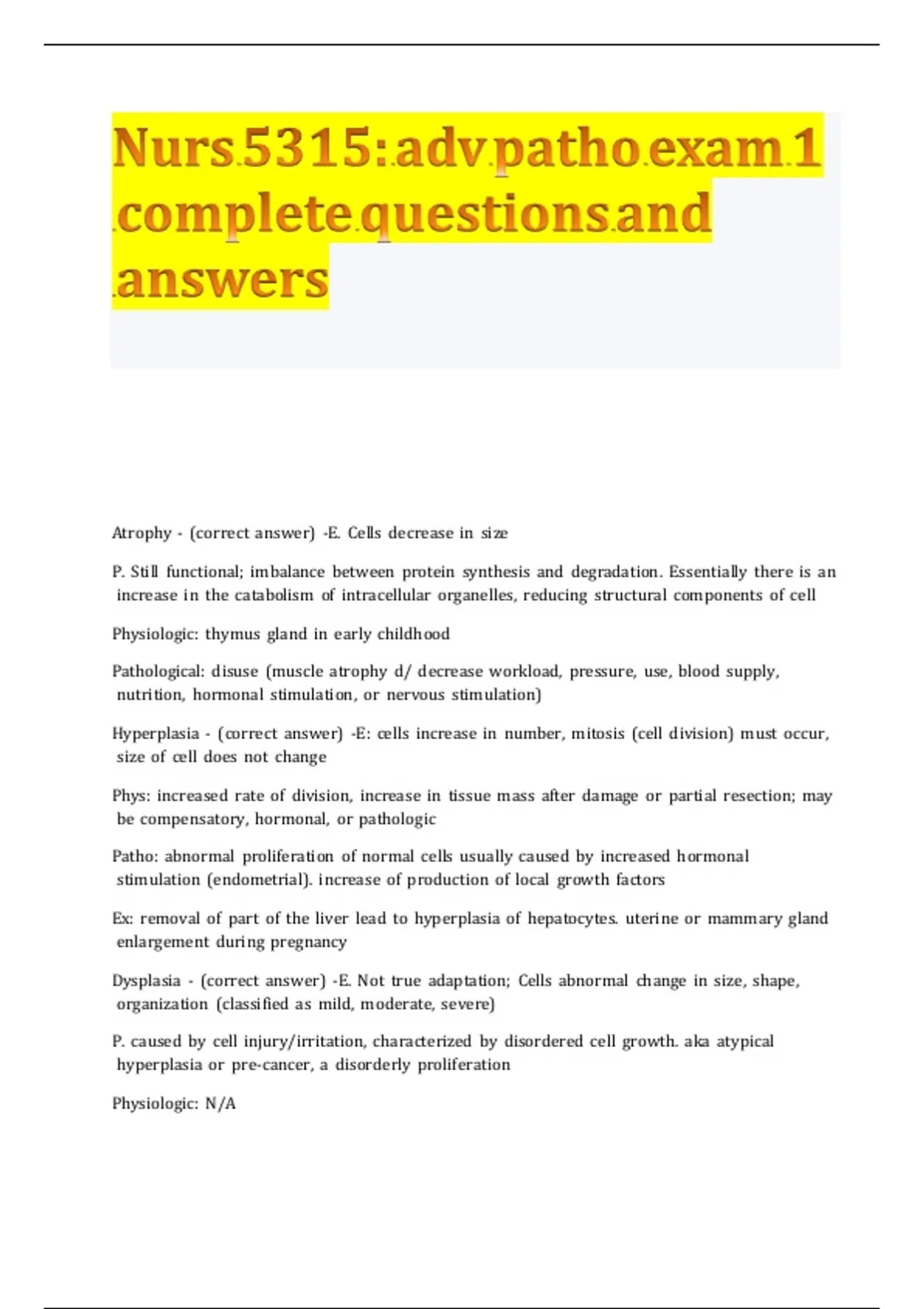 Nurs 5315 Adv Patho Verified Exam 1 COMPLETE QUESTIONS AND ANSWERS