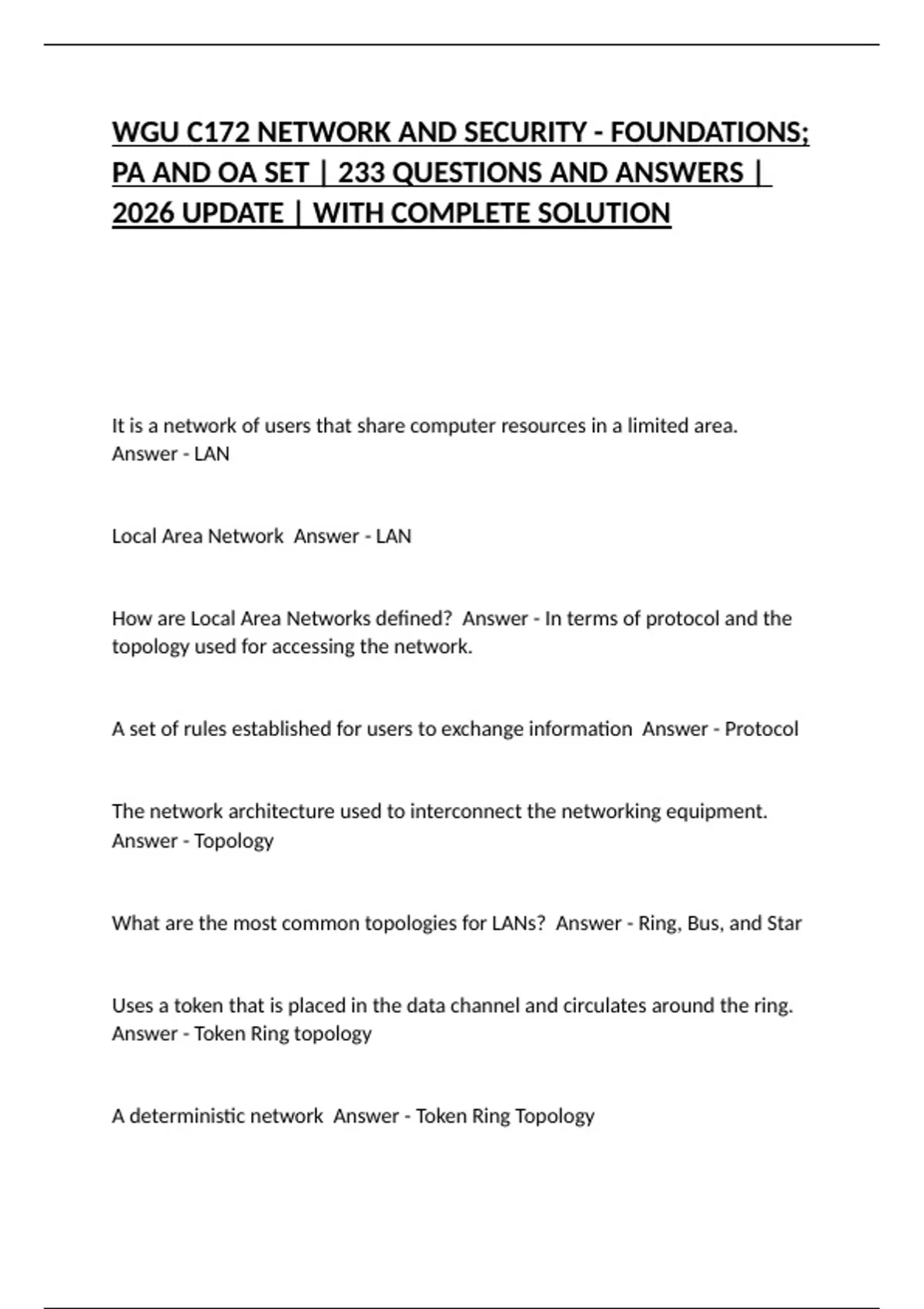 Local Area Network Answer - LAN