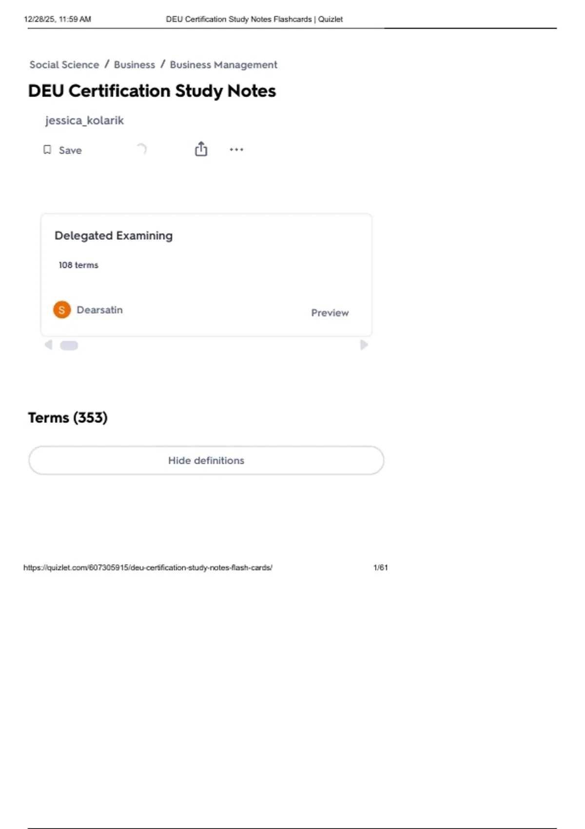 ,12/28/25, 11:59 AM DEU Certification Study Notes Flashcards | Quizlet