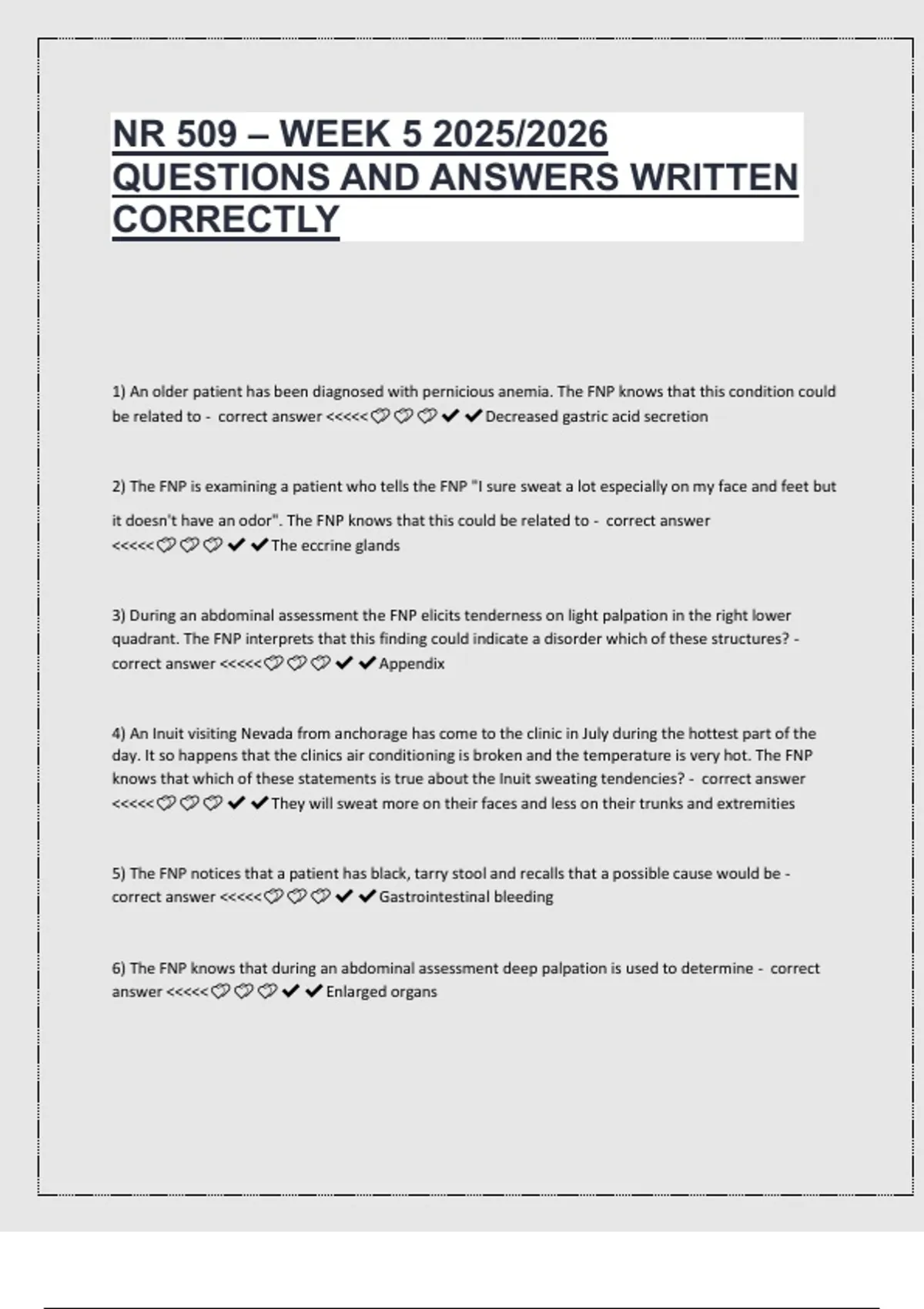 1) An older patient has been diagnosed with pernicious anemia. The FNP knows that this condition could