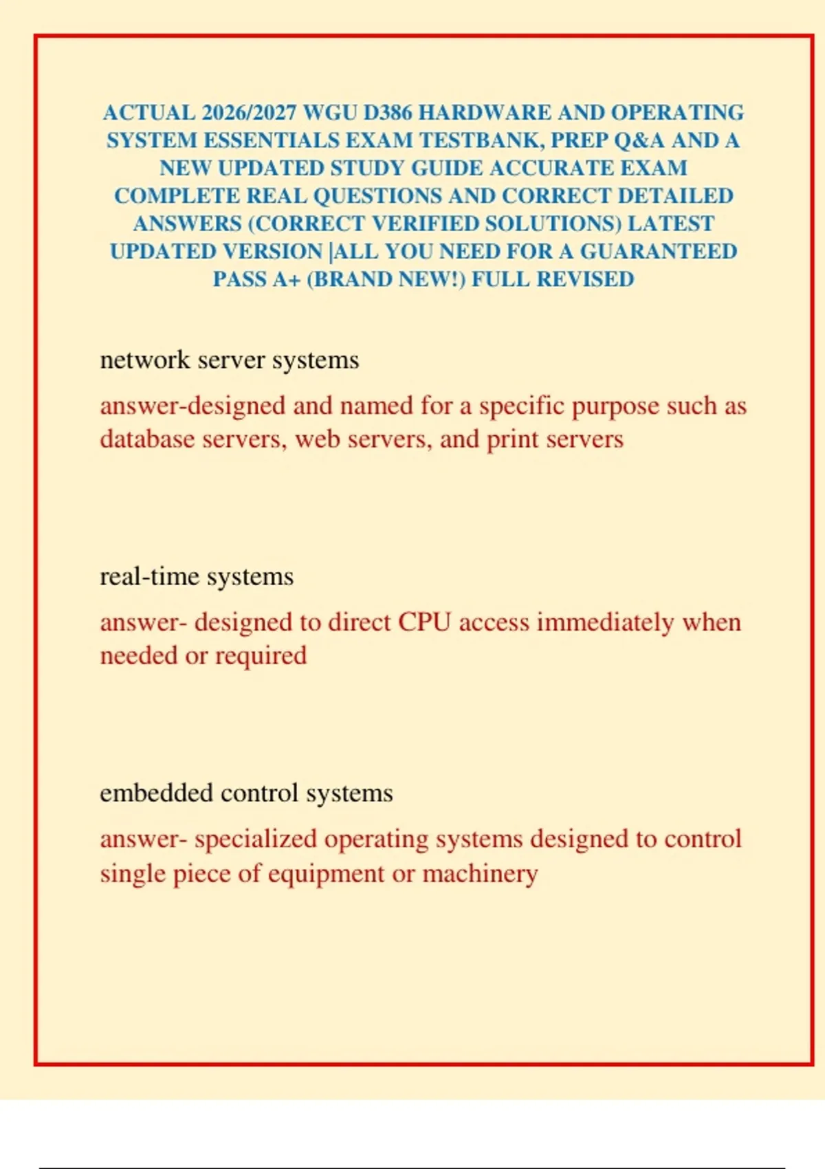 SYSTEM ESSENTIALS EXAM TESTBANK, PREP Q&A AND A