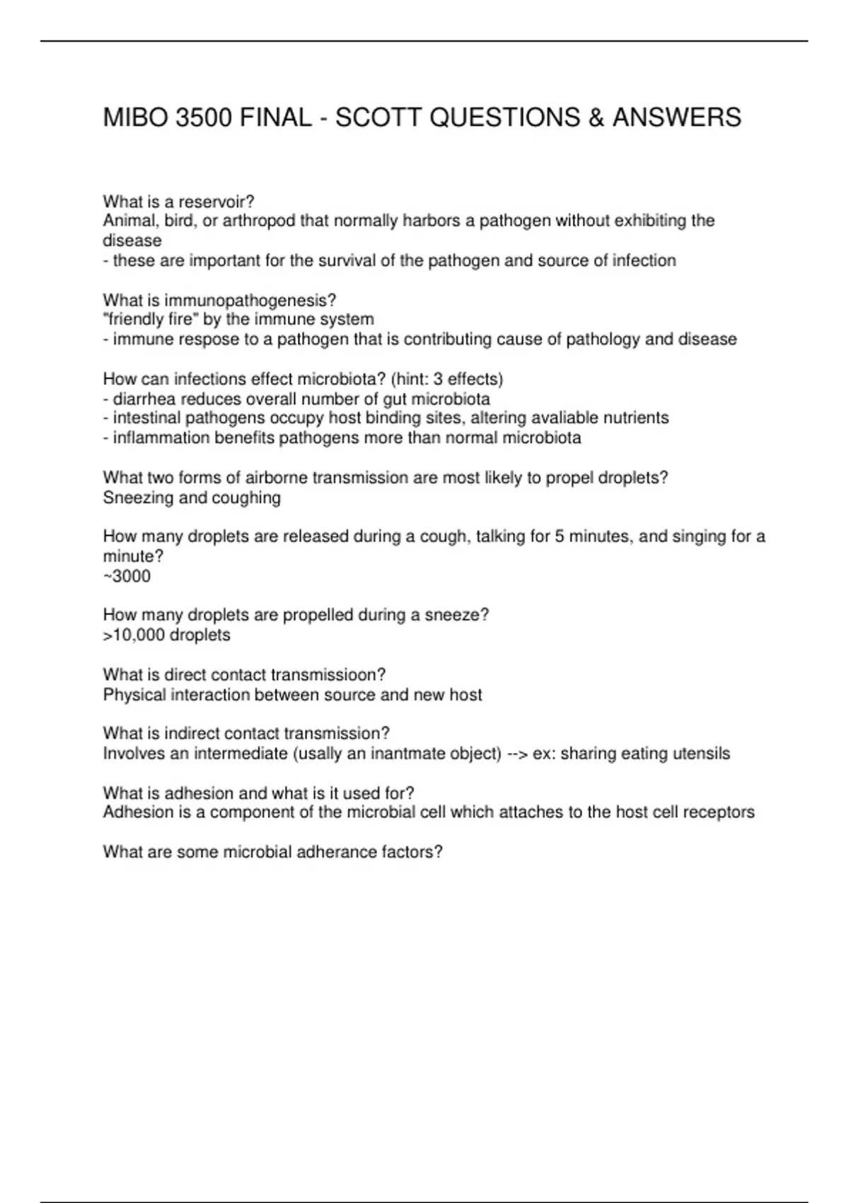 MIBO 3500 FINAL - SCOTT QUESTIONS & ANSWERS