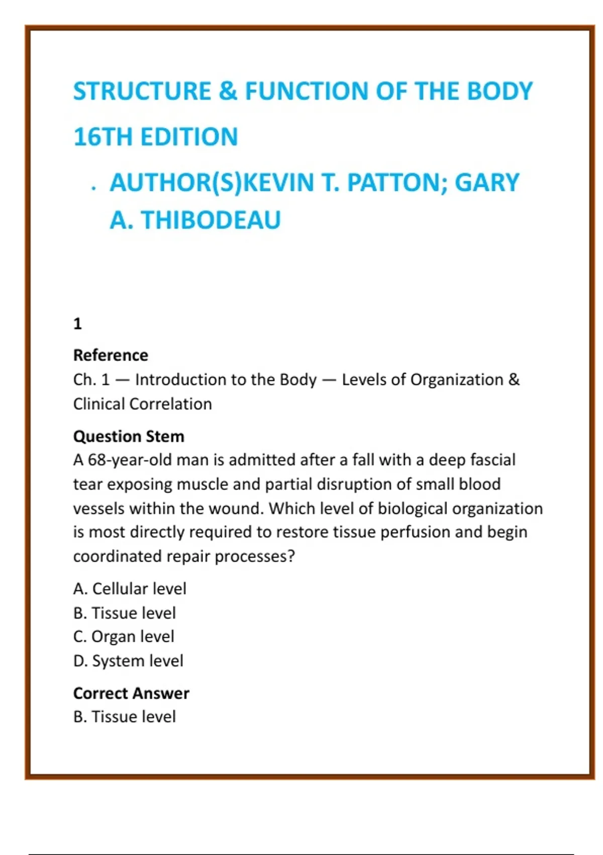 Ch. 1 — Introduction to the Body — Levels of Organization &