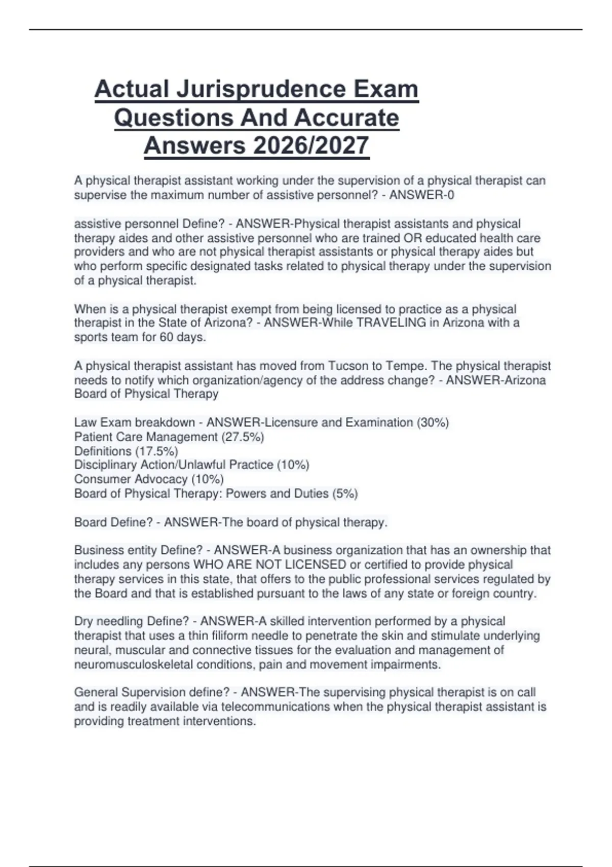 Actual Jurisprudence Exam Questions And Accurate Answers 2026/2027
