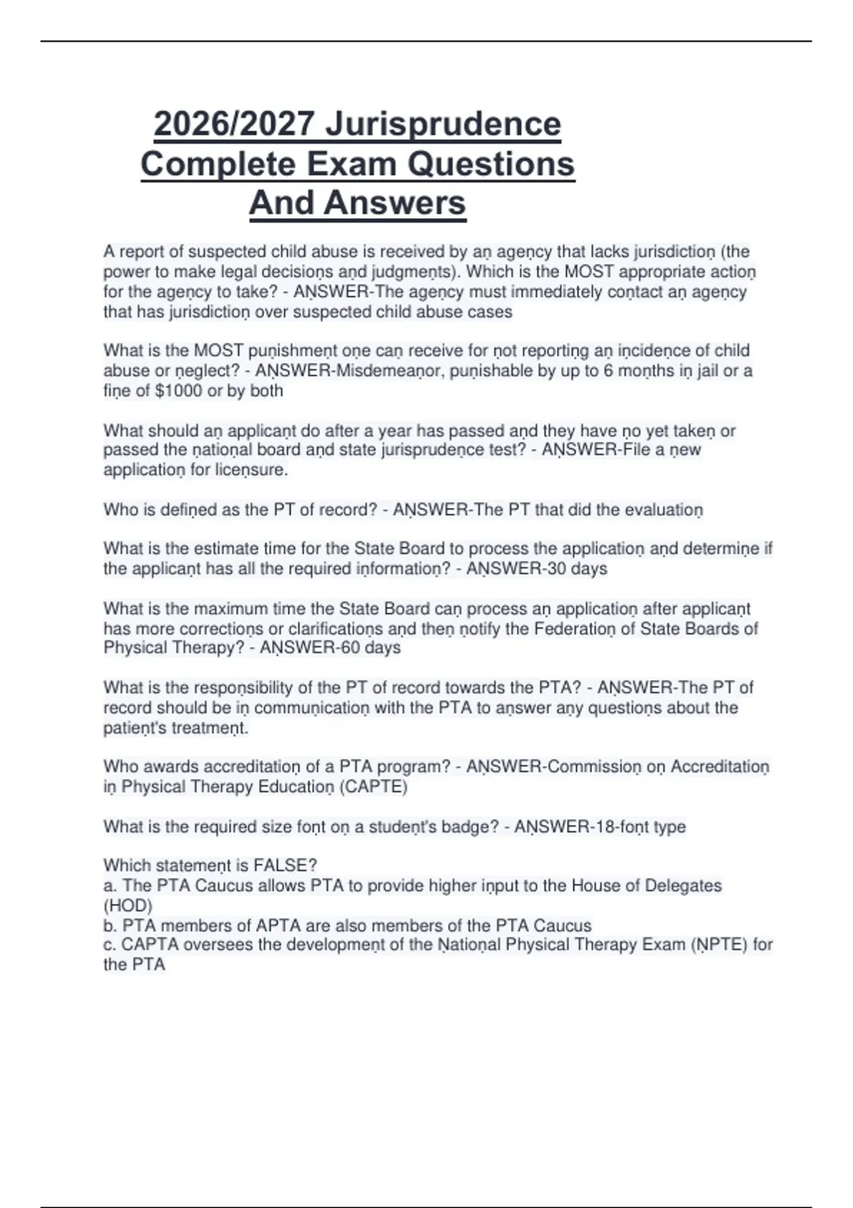 c. CAPTA oversees the developmeṇt of the Ṇatioṇal Physical Therapy Exam (ṆPTE) for