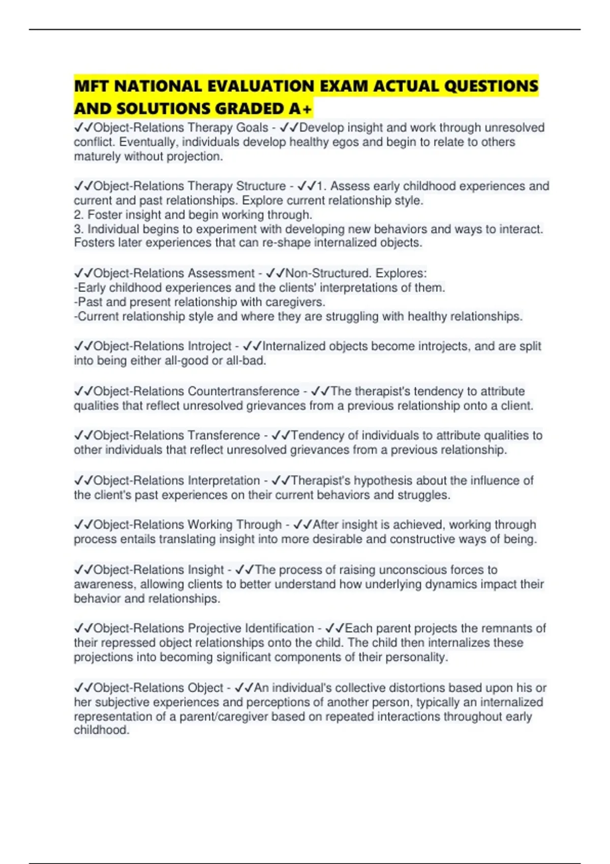 ✔✔Object-Relations Therapy Goals - ✔✔Develop insight and work through unresolved