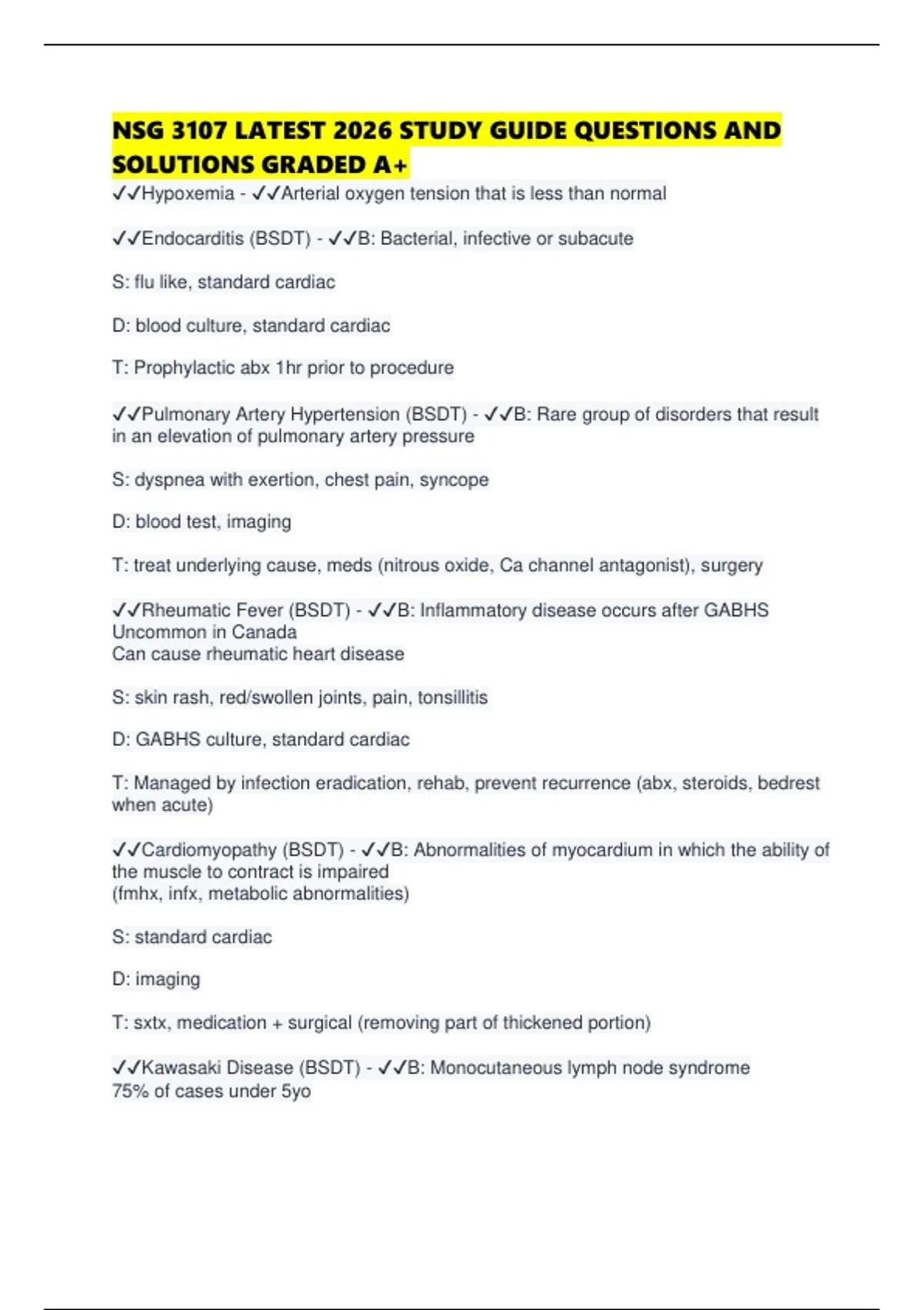 NSG 3107 LATEST 2026 STUDY GUIDE QUESTIONS AND SOLUTIONS GRADED A+