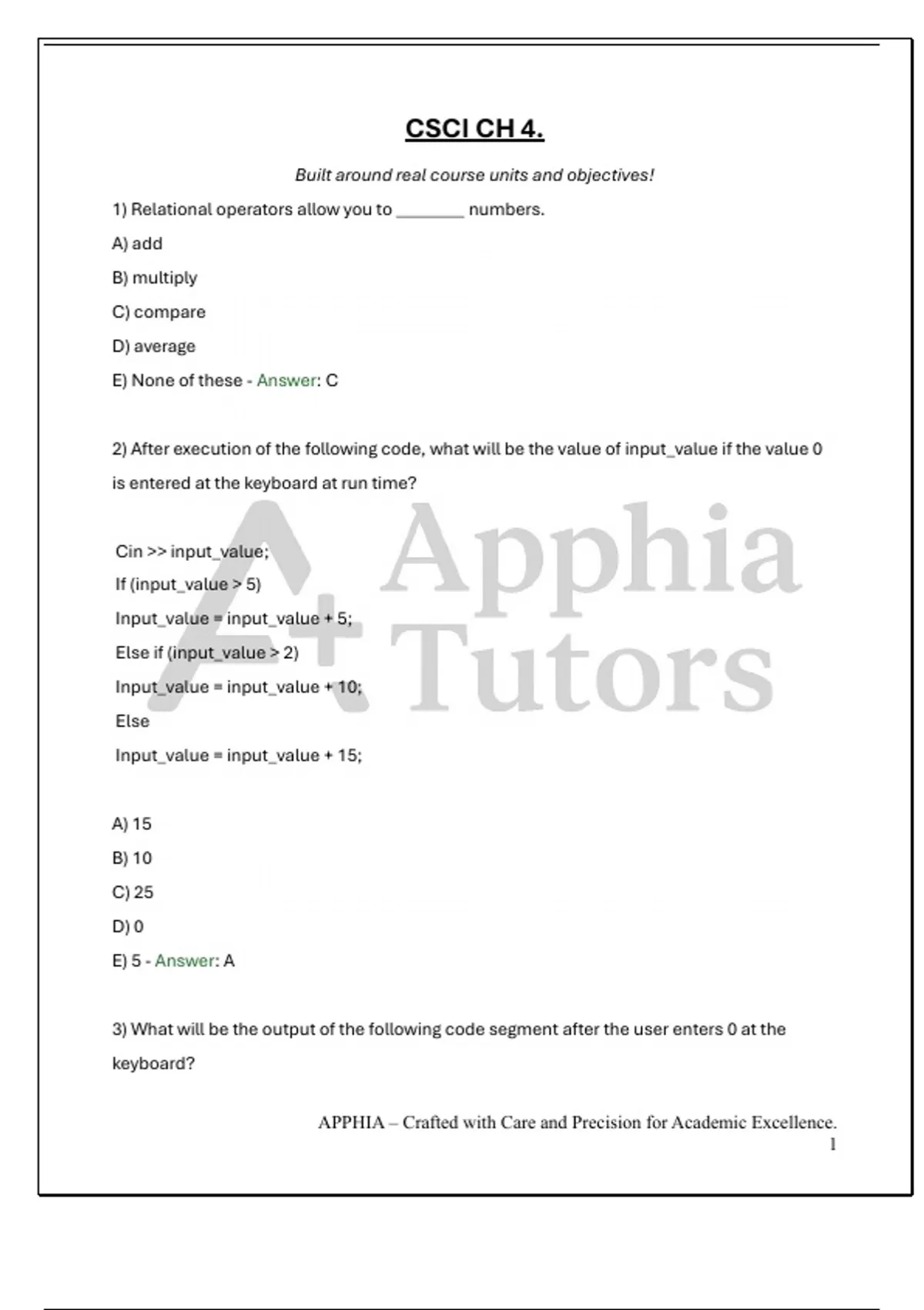 2) After execution of the following code, what will be the value of input_value if the value 0