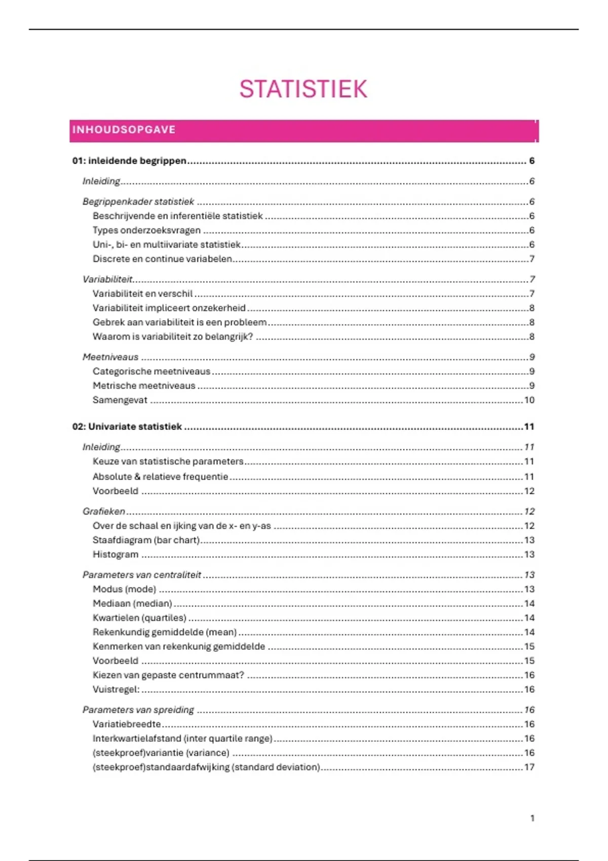 (steekproef)standaardafwijking (standard deviation) ..................................................................... 17