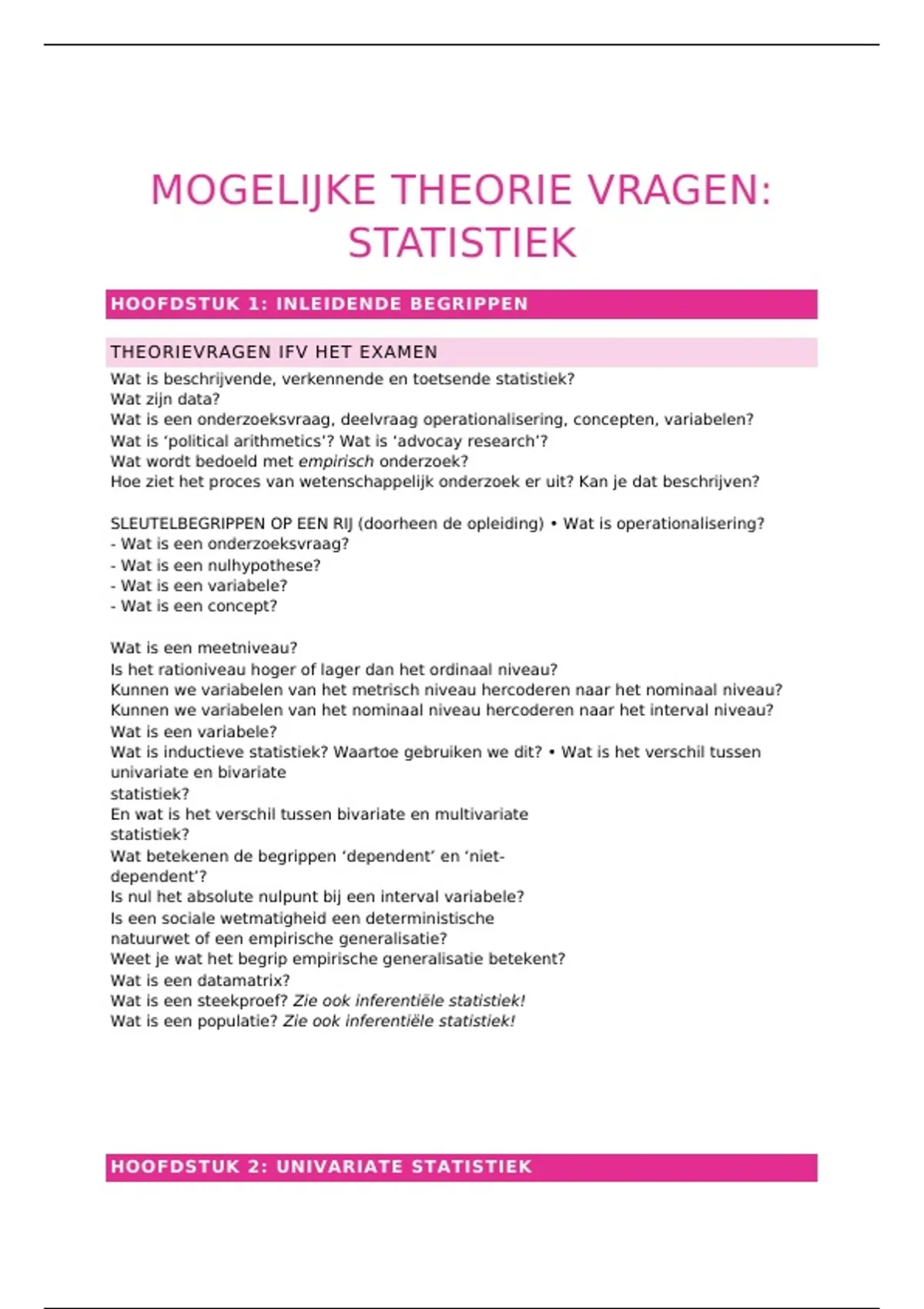 HOOFDSTUK 2: UNIVARIATE STATISTIEK
