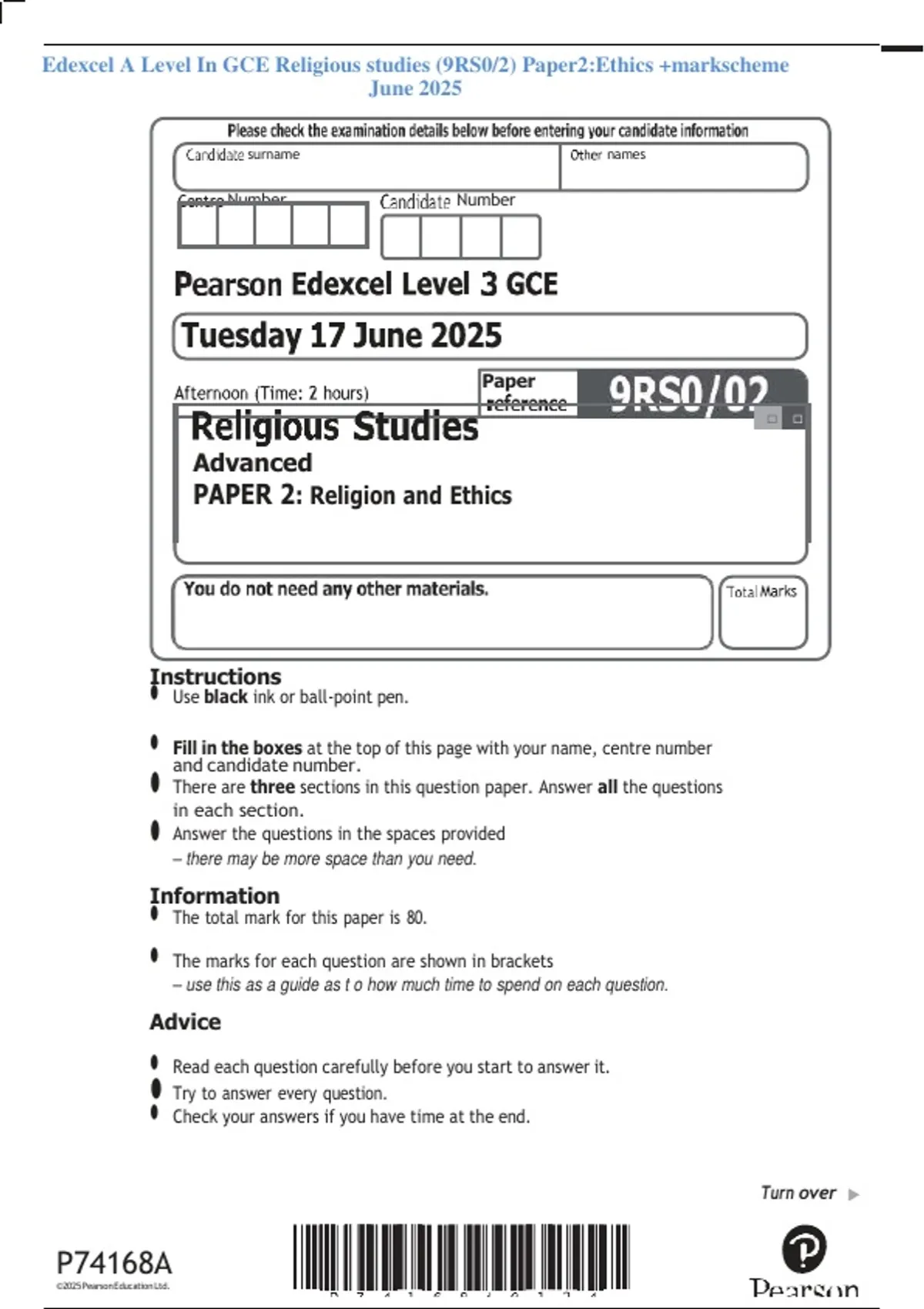 • The total mark for this paper is 80.