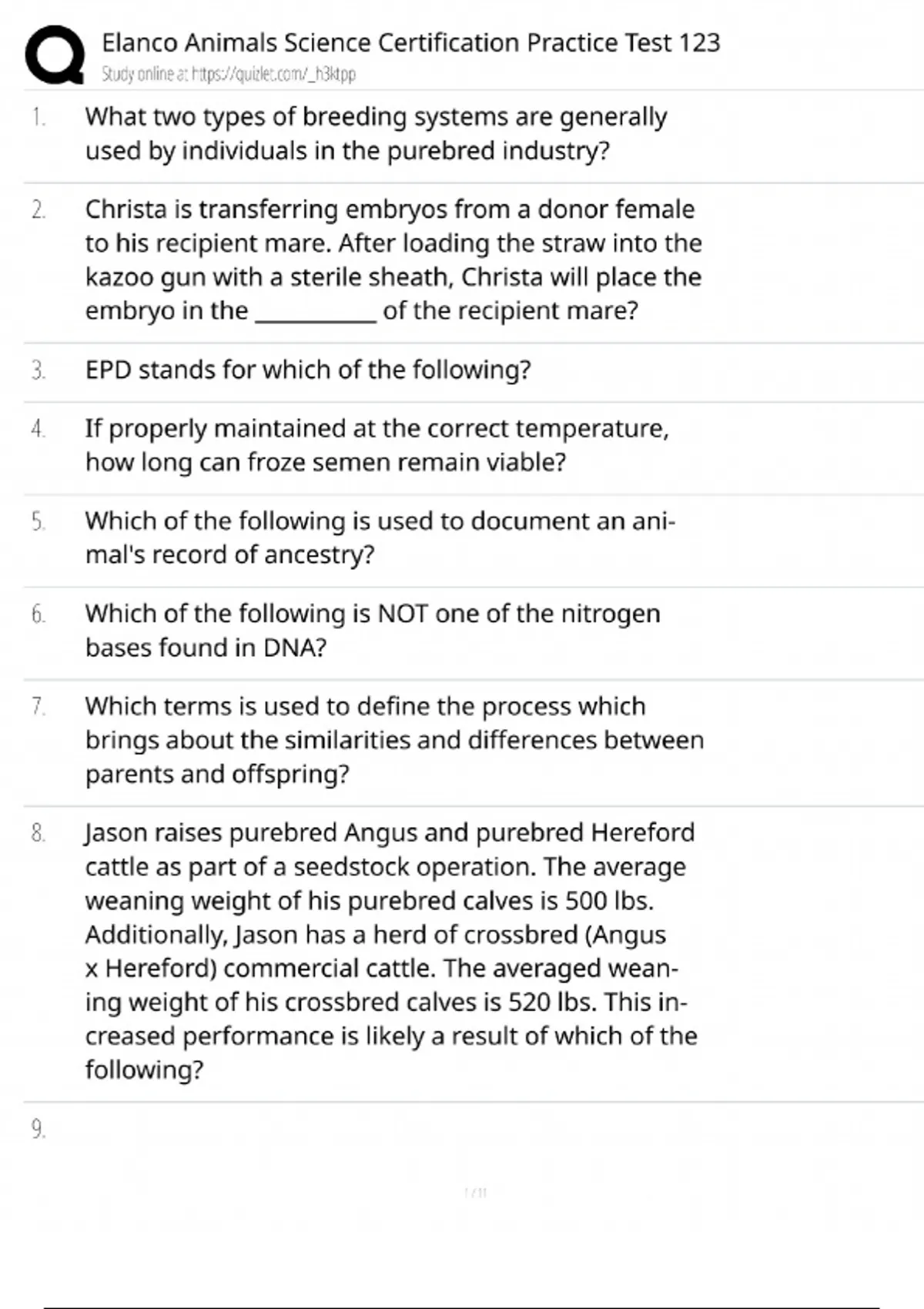 Elanco Animal Science Certification / Practice Test 1 2 3 / Study Guide & Test Bank / Score 100% 2025