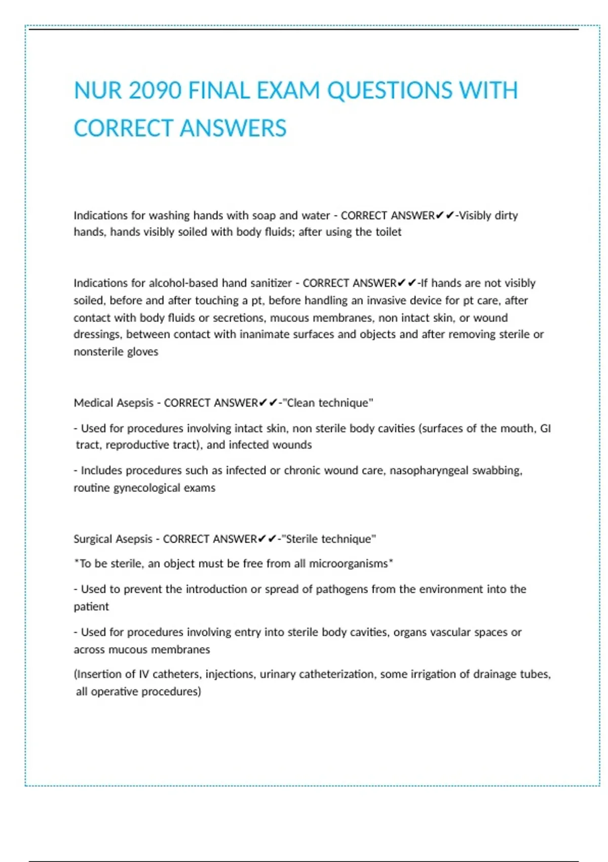 Medical |Asepsis |- |CORRECT |ANSWER✔✔-"Clean |technique"