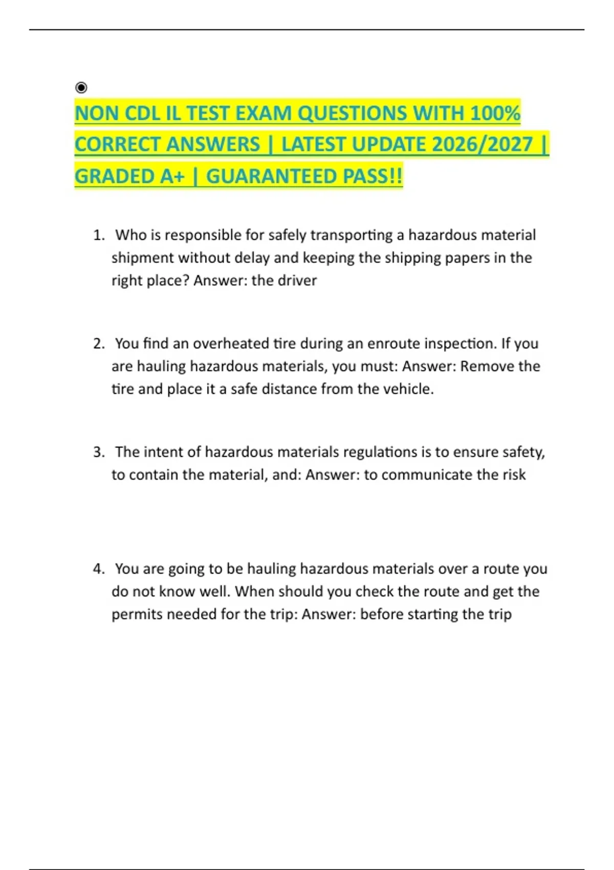 NON CDL IL TEST EXAM QUESTIONS WITH 100%